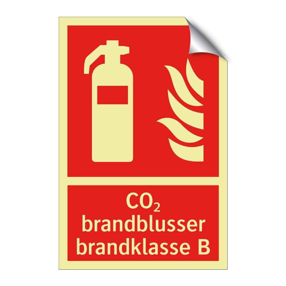 Brandbord met tekst CO₂ brandblusser brandklasse B