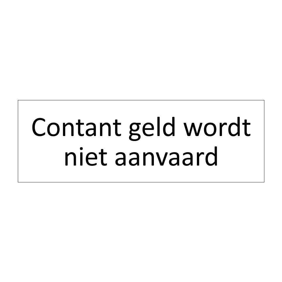 Informatiebord met tekst Contant geld wordt niet aanvaard.