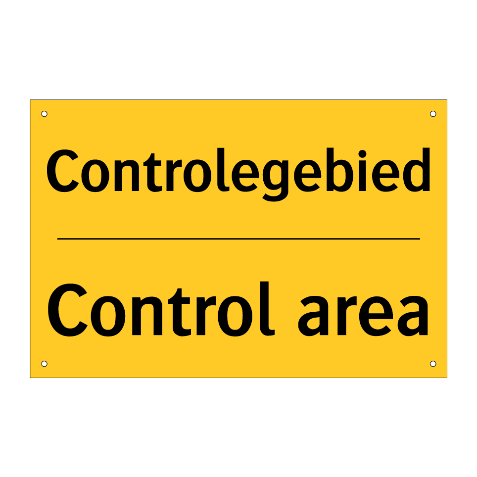 Waarschuwingsbord met de tekst Controlegebied / Control area