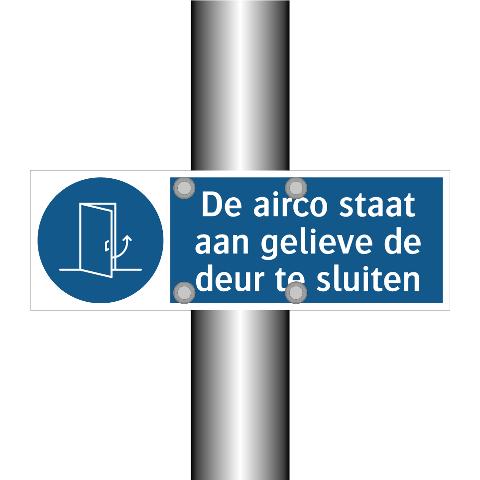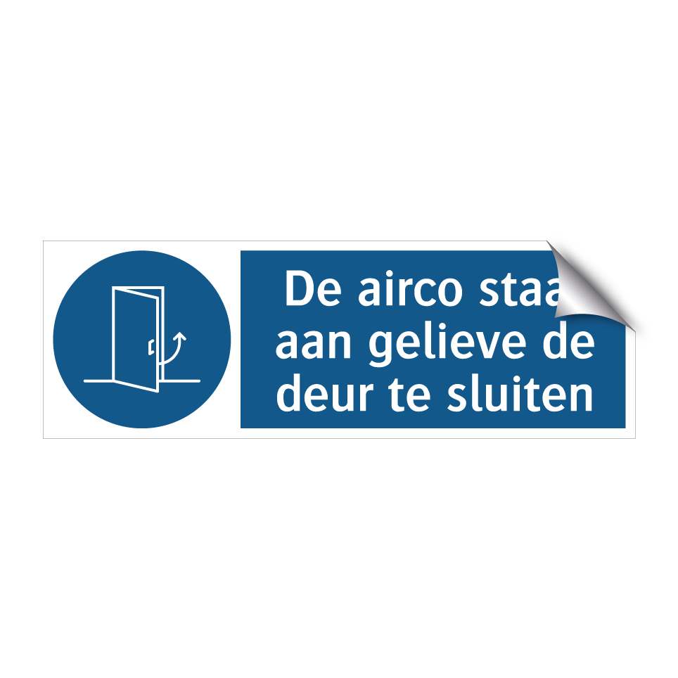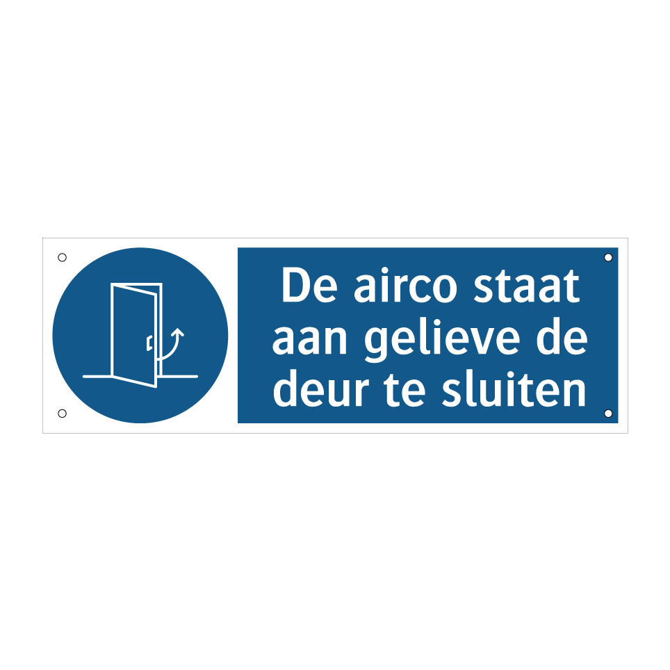 Verplichte bord met de tekst De airco staat aan gelieve de deur te sluiten