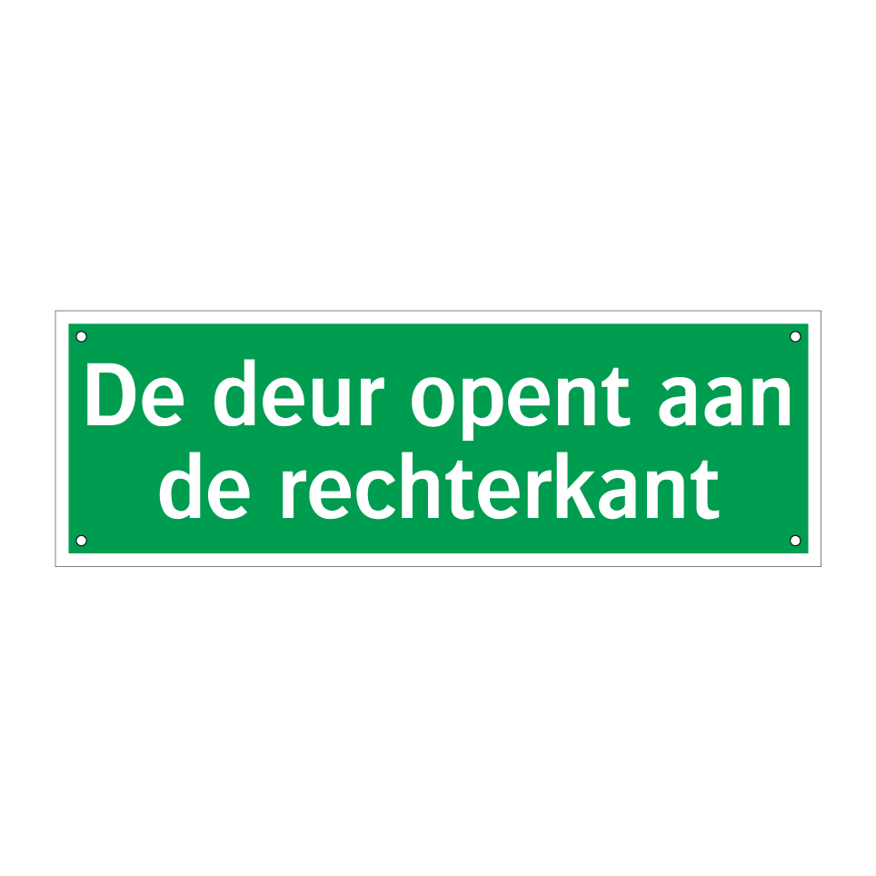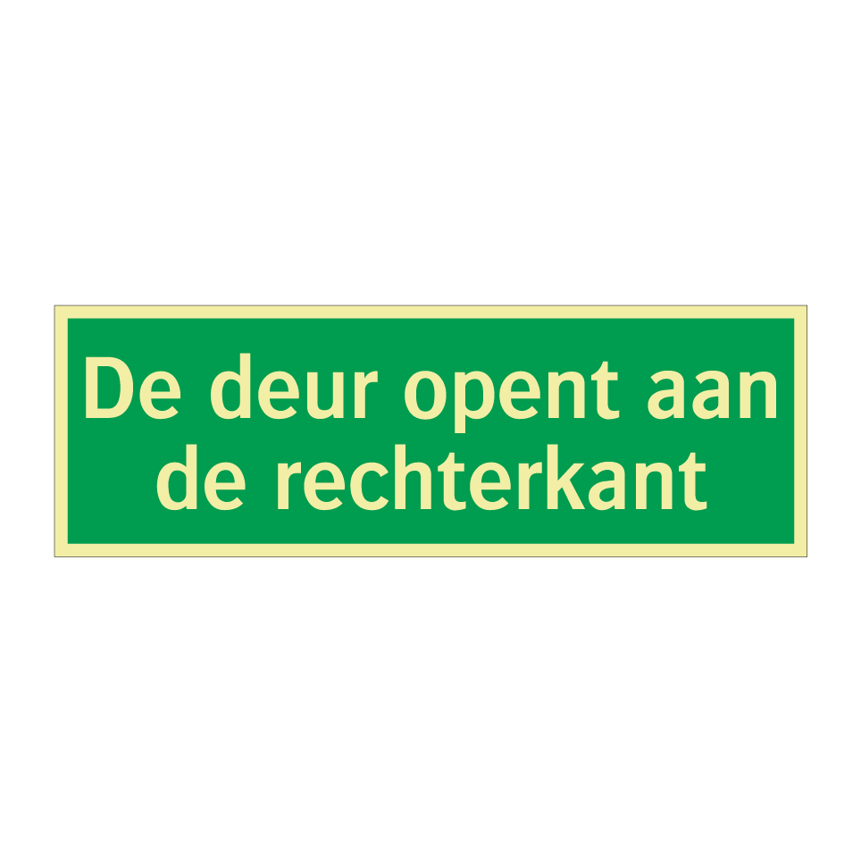 Deze noodbord is essentieel voor de veiligheid in noodsituaties. Het geeft duidelijk aan dat de deur aan de rechterkant opent, wat cruciale informatie is tijdens een evacuatie. Dit bordje kan strategisch worden geplaatst in gangen, bij nooduitgangen en in openbare gebouwen zoals kantoren, scholen en ziekenhuizen. Door de opvallende groene kleur met witte tekst is het bord gemakkelijk te herkennen, zelfs in stressvolle situaties. Het helpt om paniek te verminderen en zorgt ervoor dat mensen snel en efficiënt de juiste uitweg vinden. Plaats dit noodbord op goed zichtbare plekken om de veiligheid van iedereen te waarborgen.