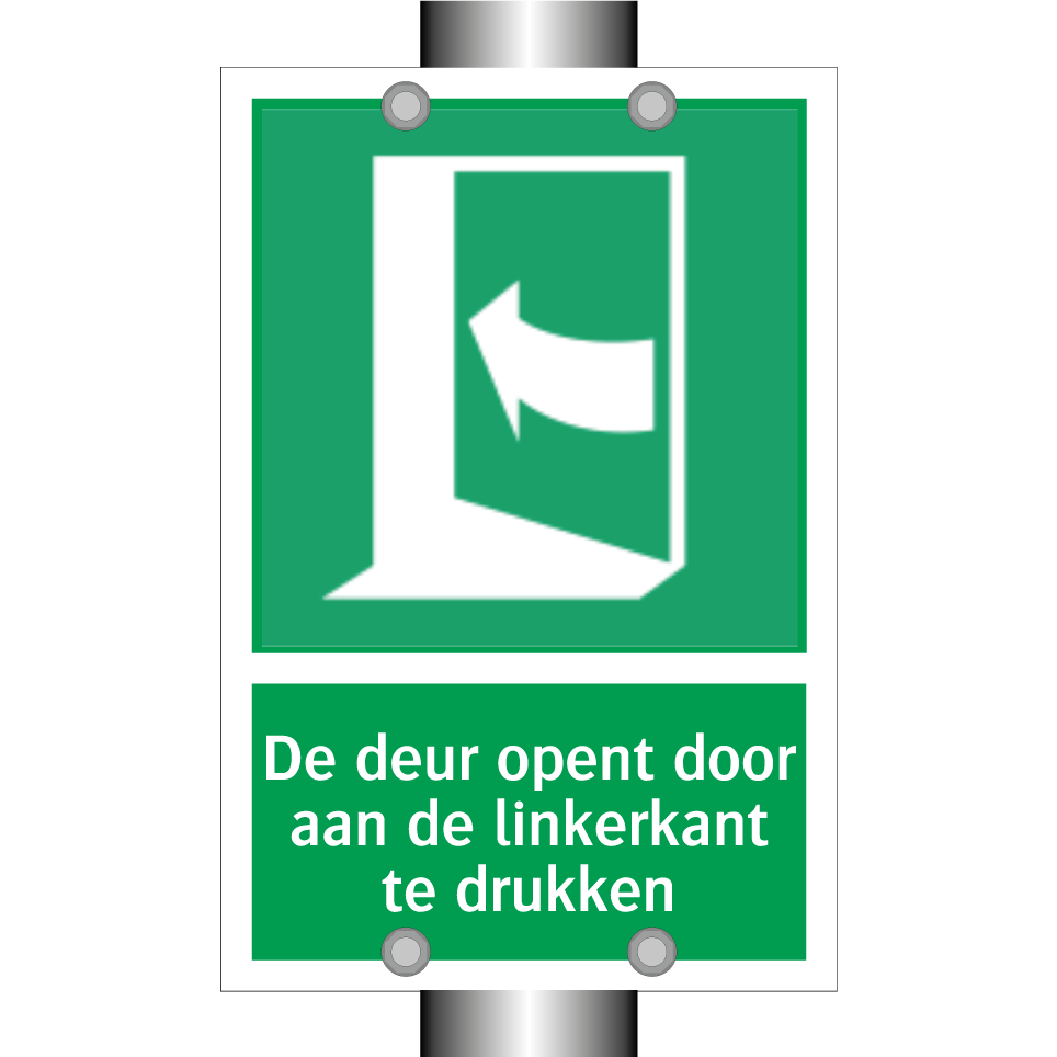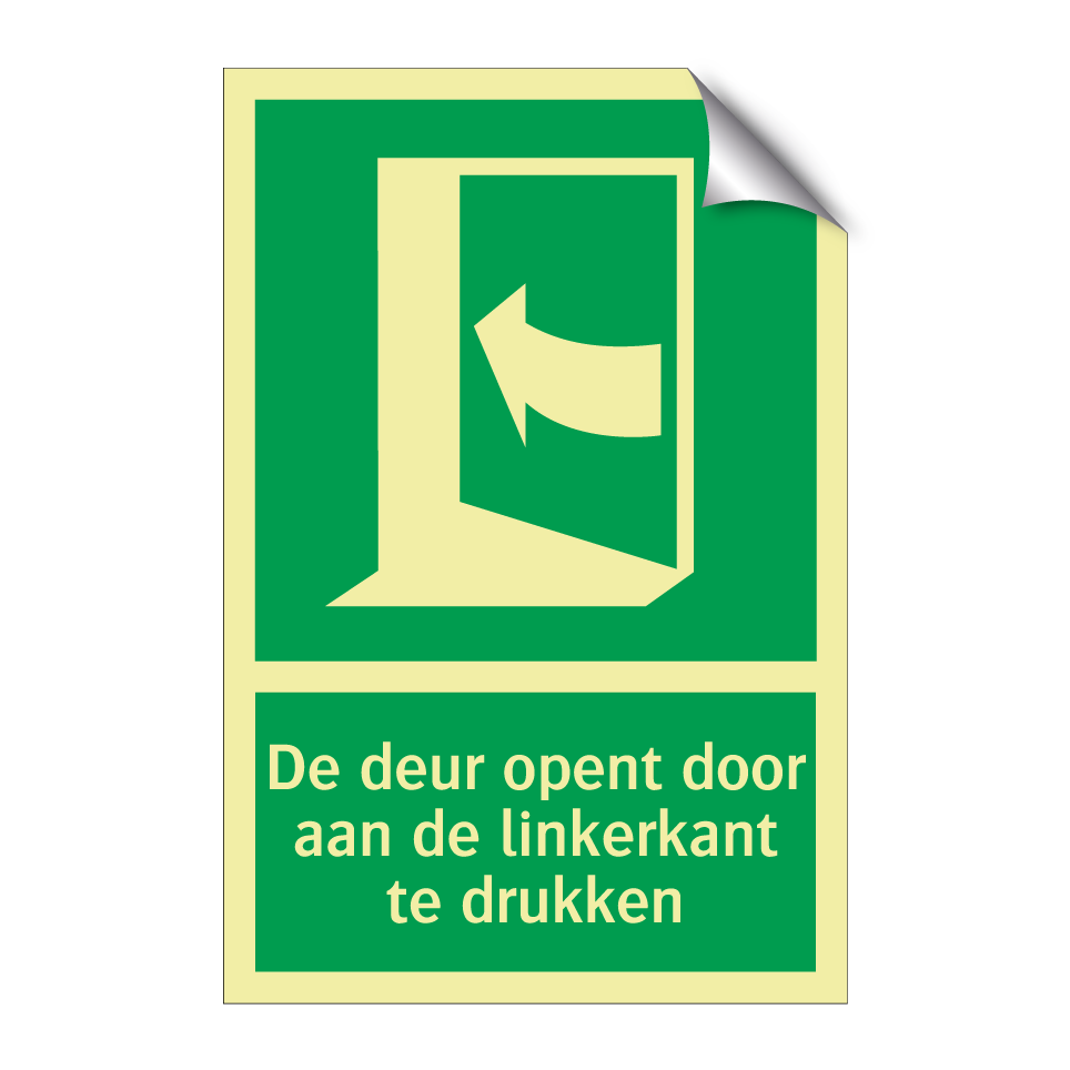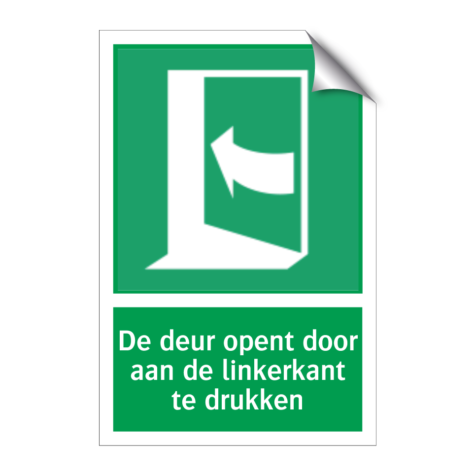 Noodbord met tekst De deur opent door aan de linkerkant te drukken