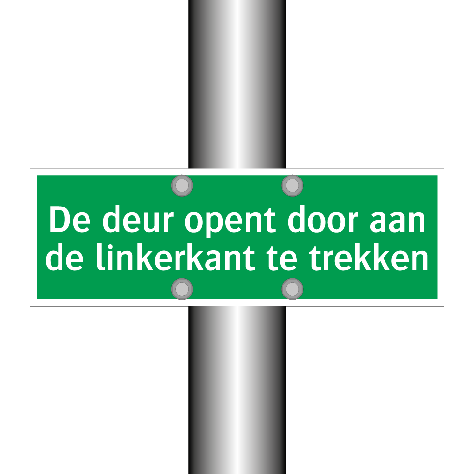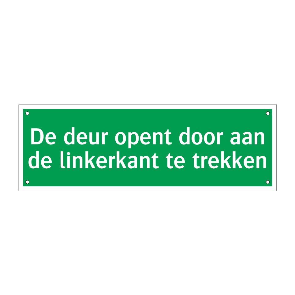 Noodbord met tekst De deur opent door aan de linkerkant te trekken