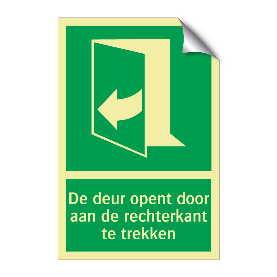 Noodbord met tekst De deur opent door aan de rechterkant te trekken