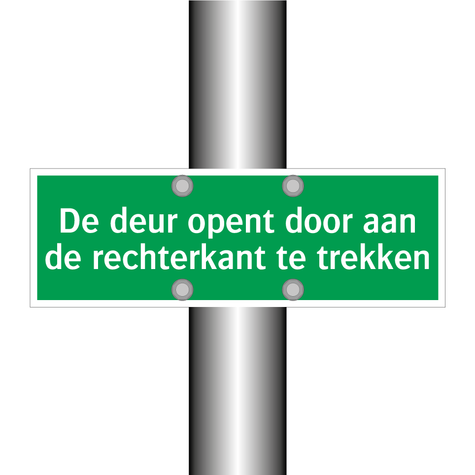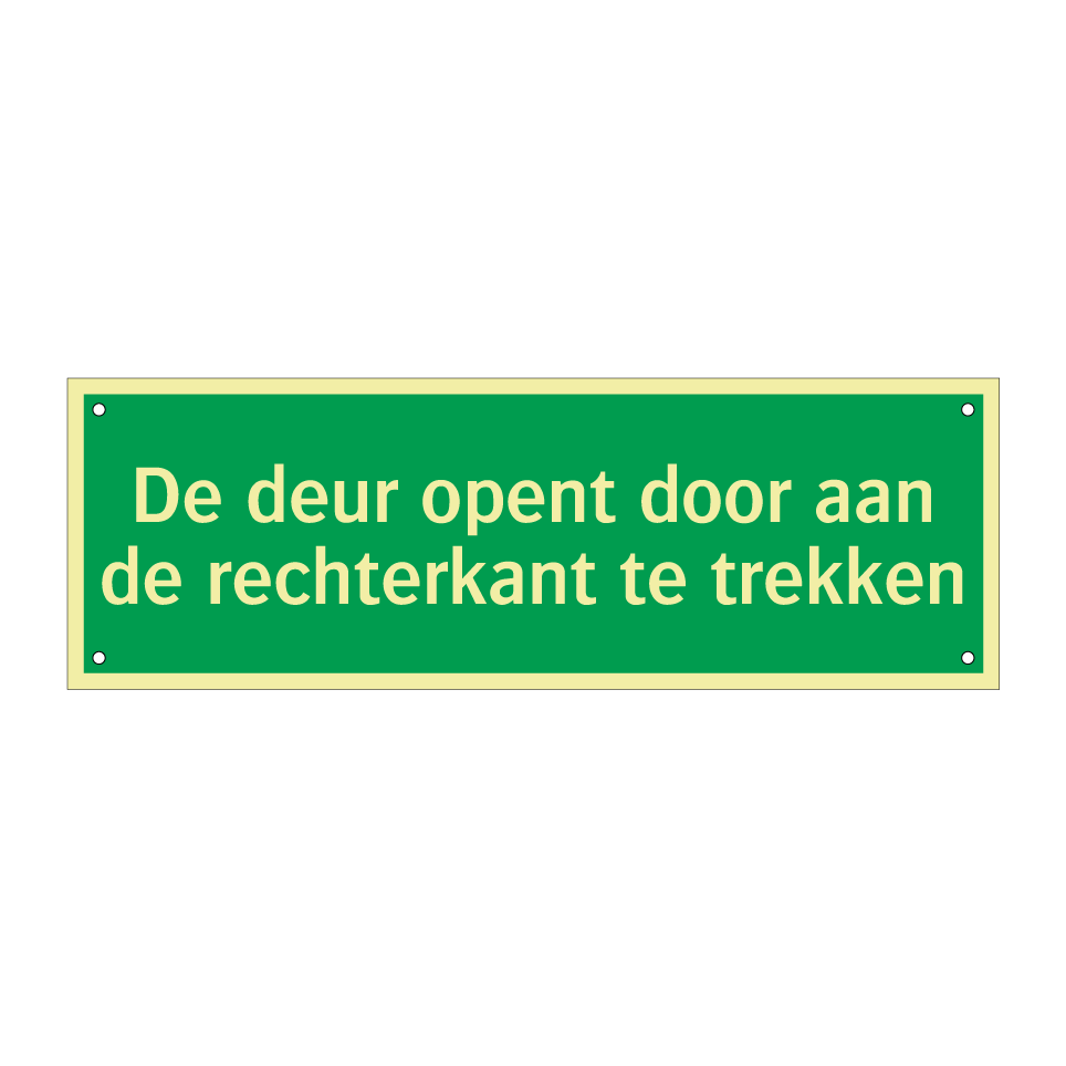 Noodbord met tekst De deur opent door aan de rechterkant te trekken