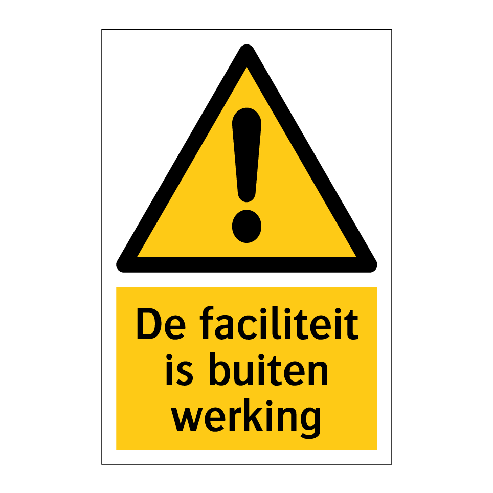 Waarschuwingsbord met de tekst De faciliteit is buiten werking