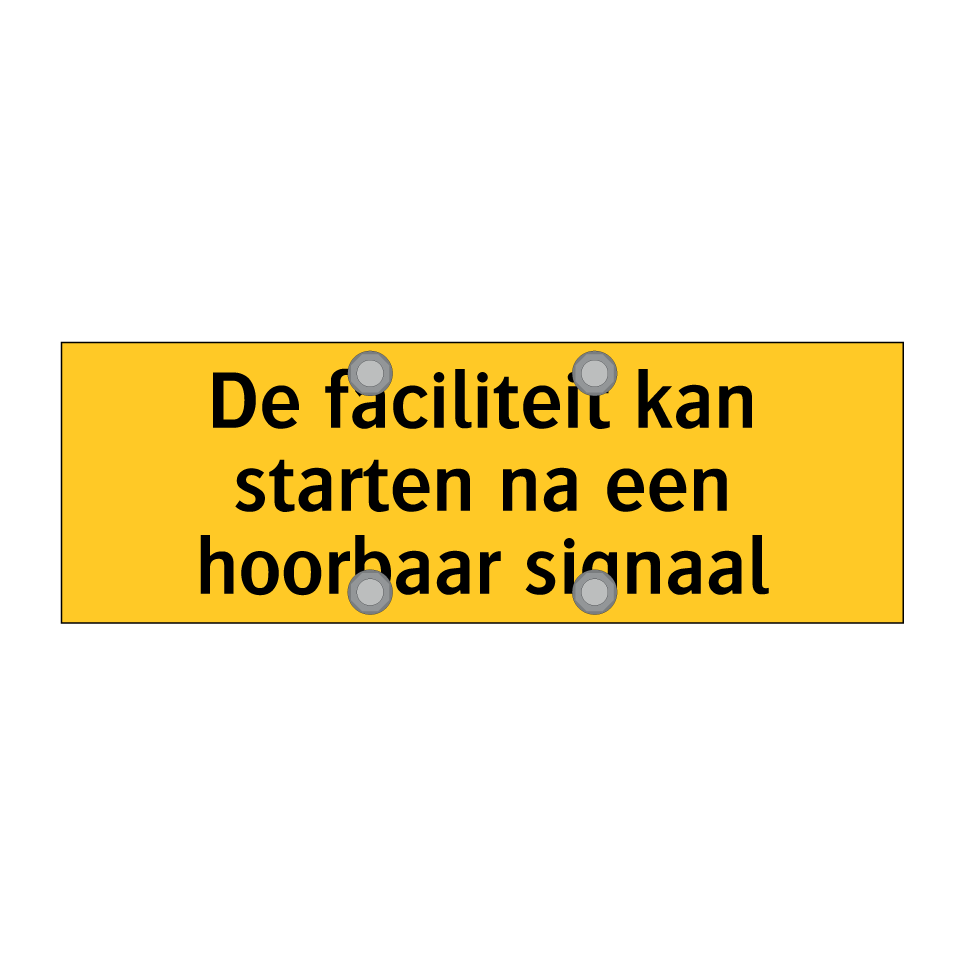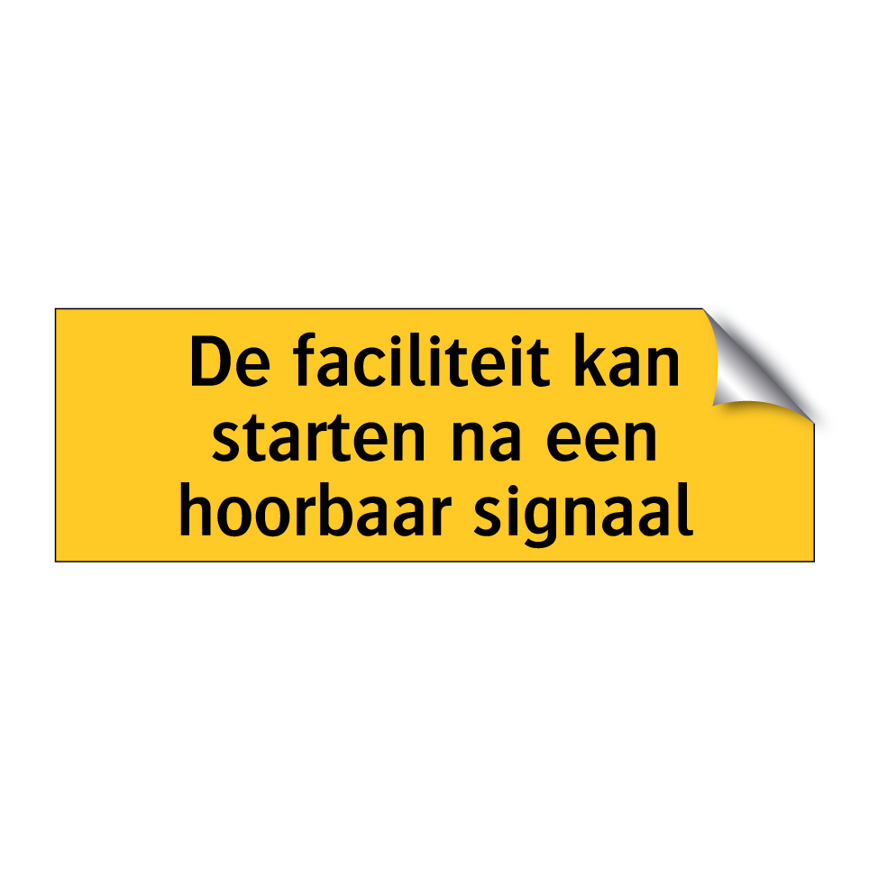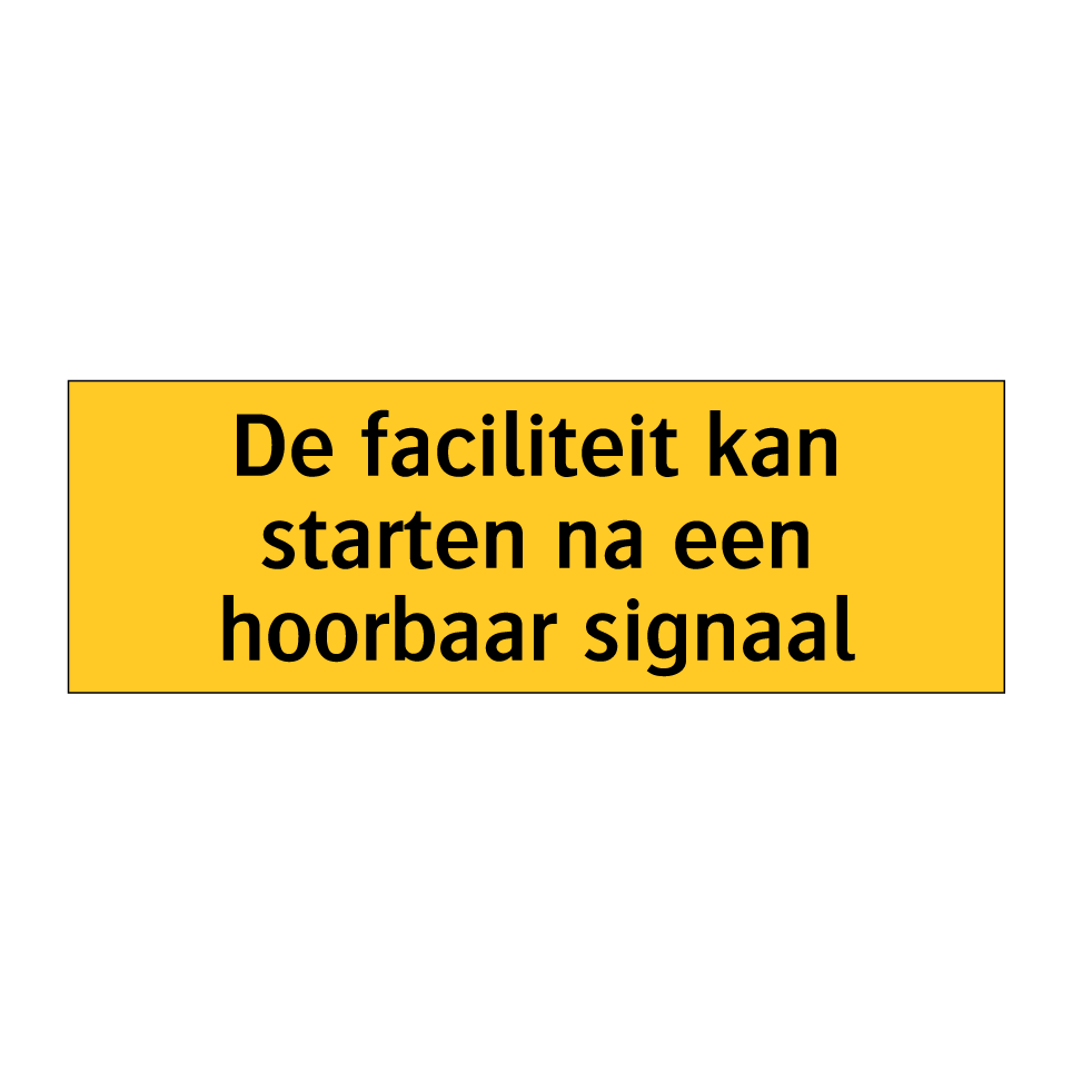 Waarschuwingsbord met de tekst De faciliteit kan starten na een hoorbaar signaal