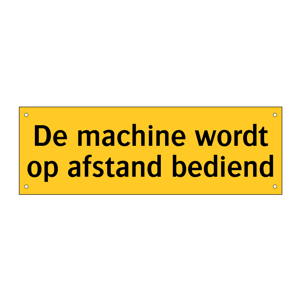Waarschuwingsbord met de tekst De machine wordt op afstand bediend