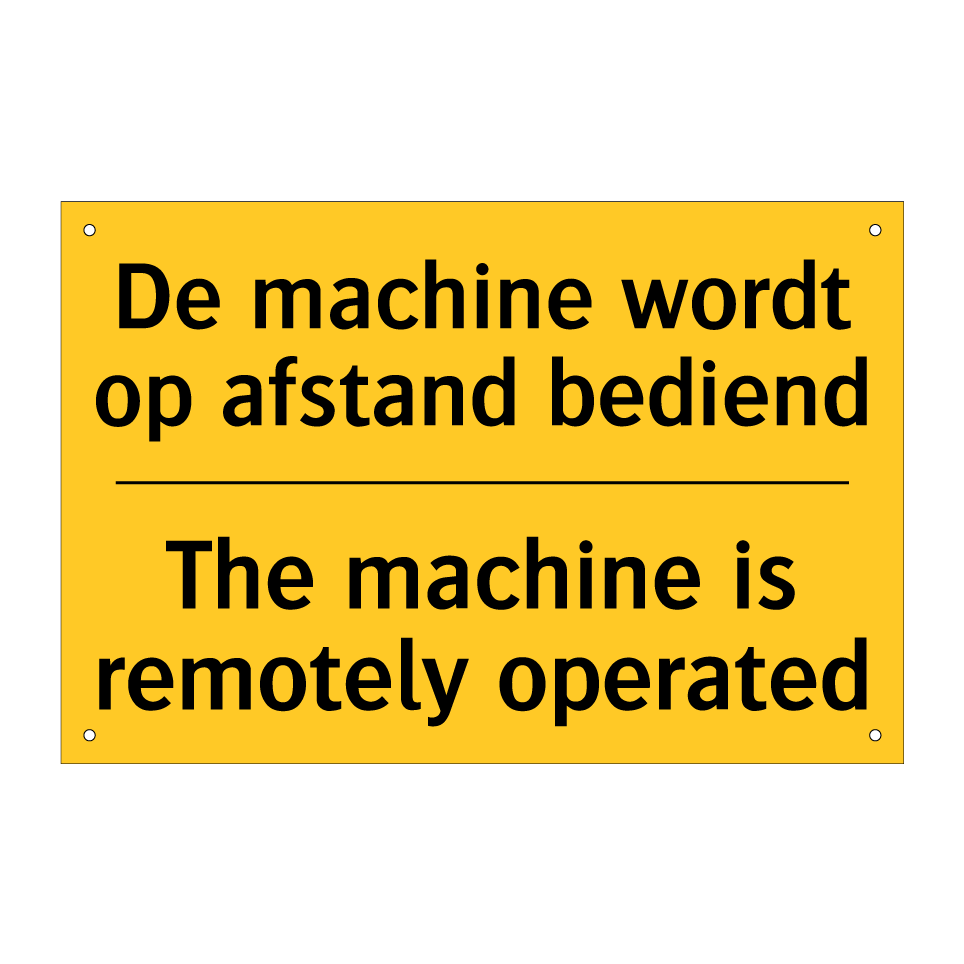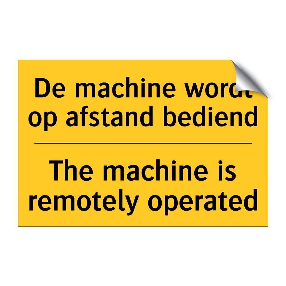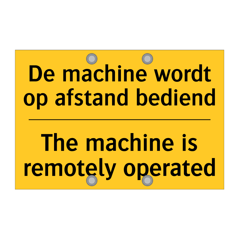 Waarschuwingsbord met de tekst De machine wordt op afstand bediend / The machine is remotely operated