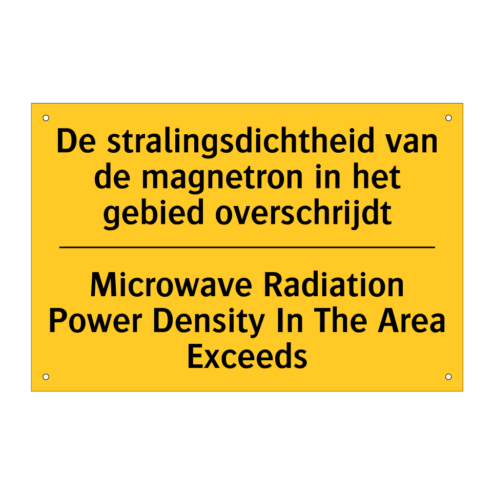Waarschuwingsbord met de tekst De stralingsdichtheid van de magnetron in het gebied overschrijdt / Microwave Radiation Power Density In The Area Exceeds