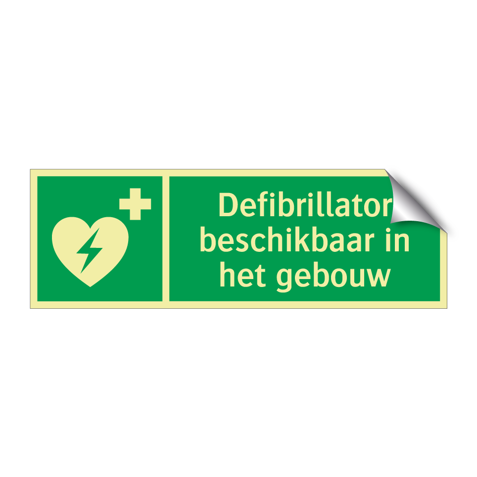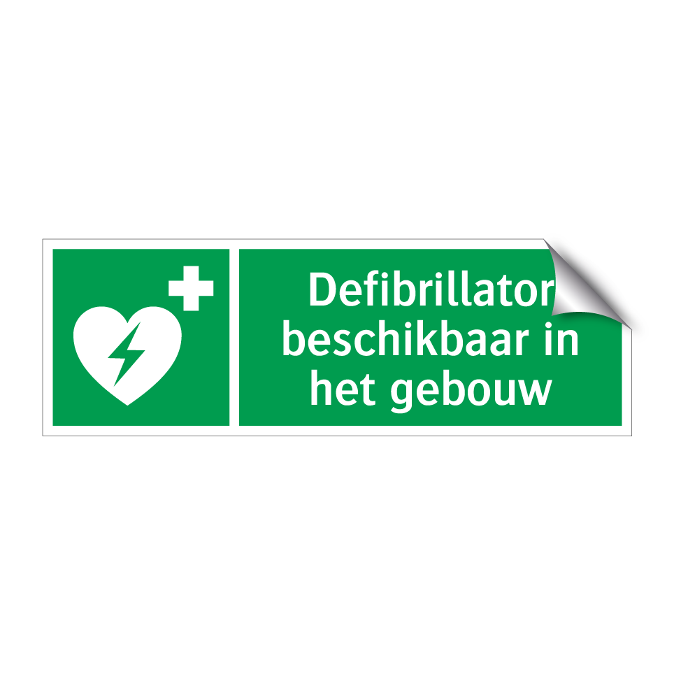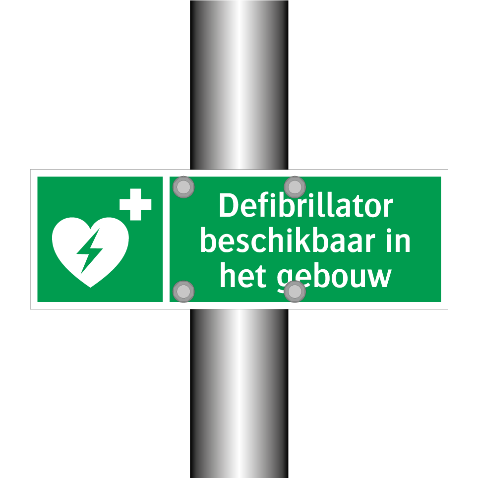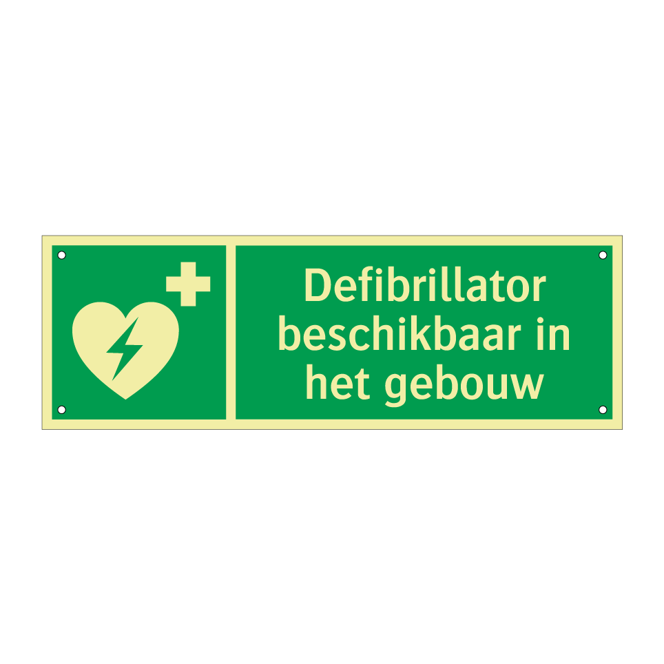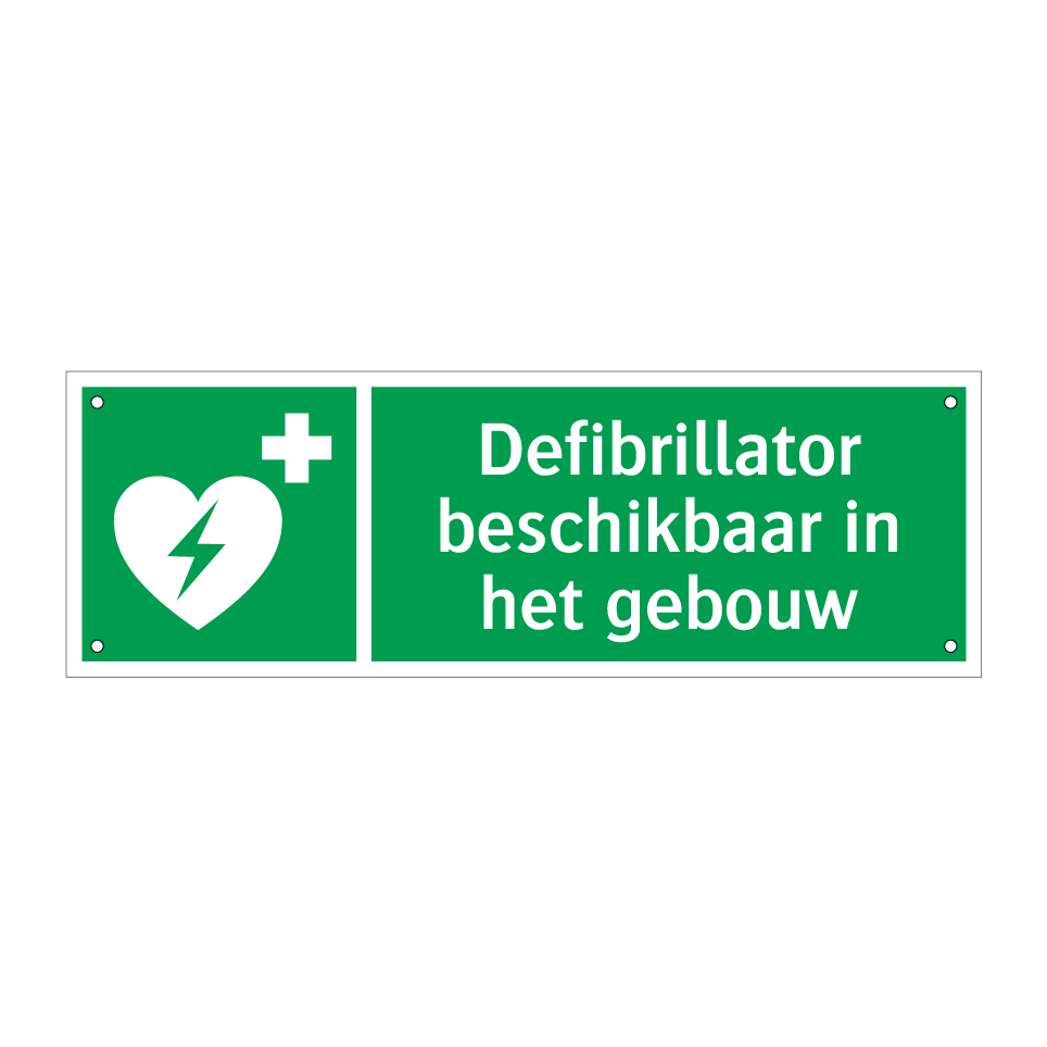 Noodbord met tekst Defibrillator beschikbaar in het gebouw