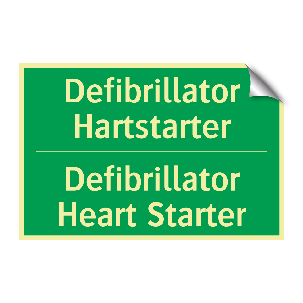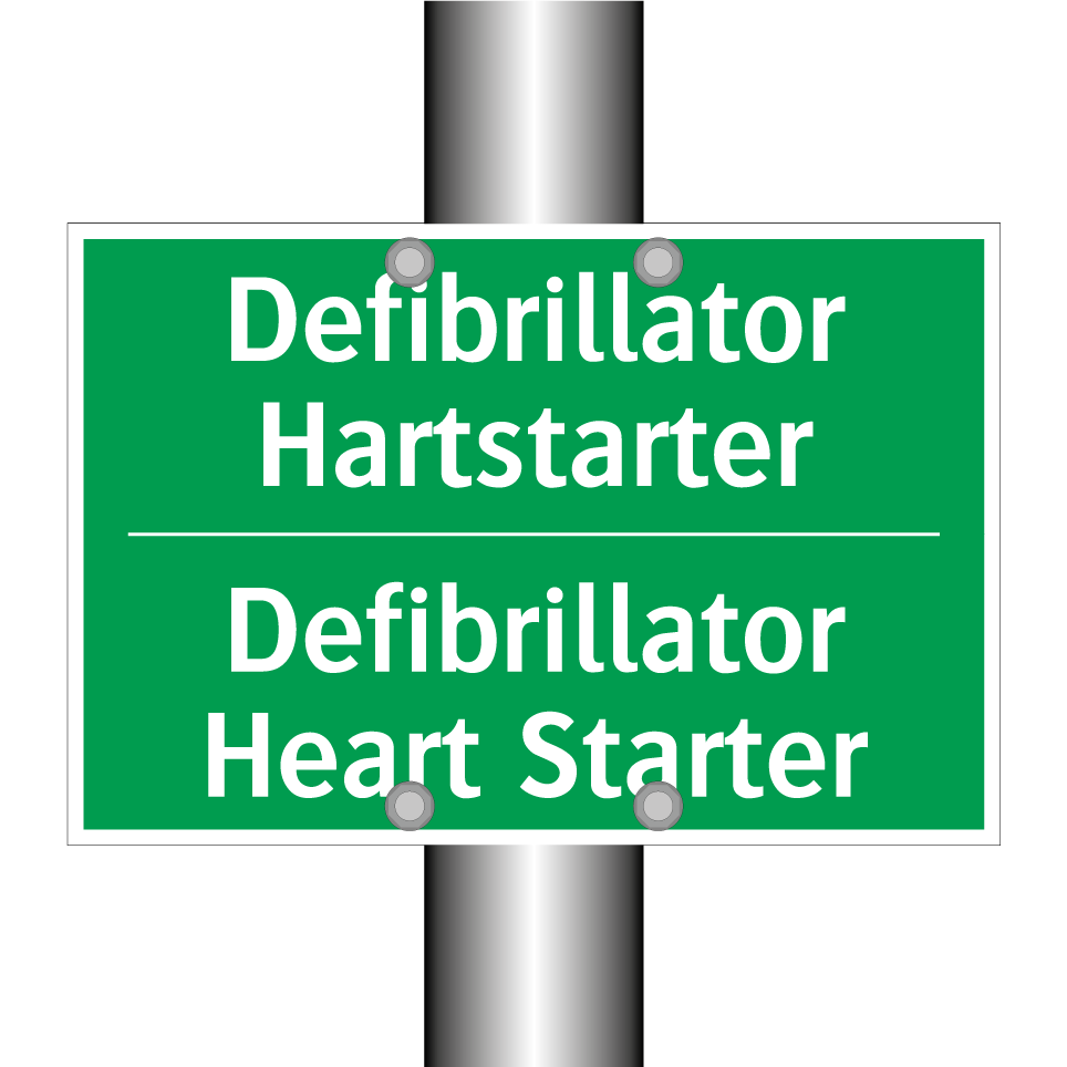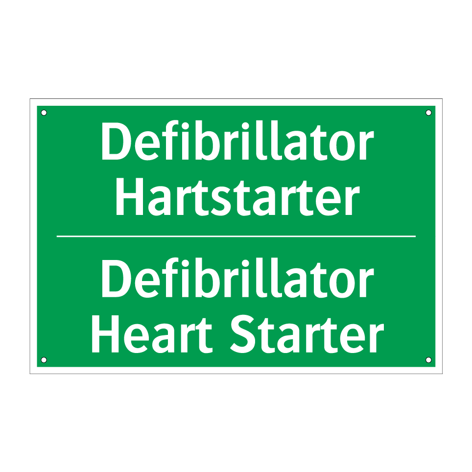Noodbord met tekst Defibrillator Hartstarter / Defibrillator Heart Starter