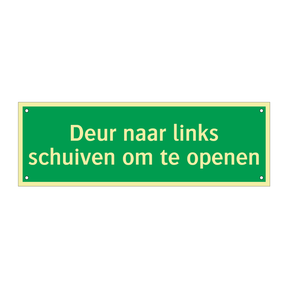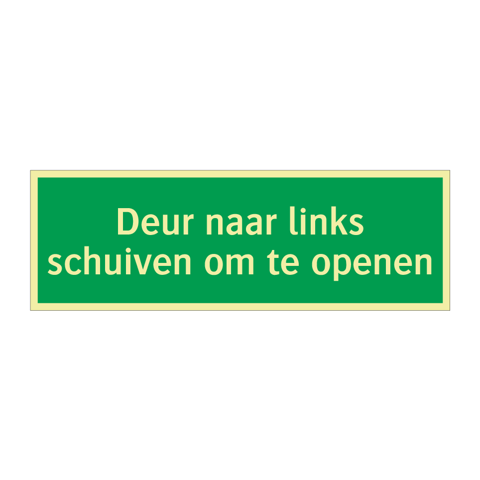 Deze noodbord is essentieel voor elke ruimte waar veiligheid voorop staat. Het bord geeft duidelijk aan dat de deur naar links moet worden geschoven om te openen, wat cruciaal kan zijn in noodsituaties. Plaats dit noodbord bij uitgangen, nooddeuren of vluchtwegen om ervoor te zorgen dat iedereen snel en efficiënt kan evacueren. Ideaal voor gebruik in kantoren, scholen, ziekenhuizen en openbare gebouwen. Door de opvallende groene kleur met witte tekst is het bord gemakkelijk te herkennen, zelfs in stressvolle situaties. Zorg voor een veilige omgeving door dit noodbord strategisch te plaatsen.