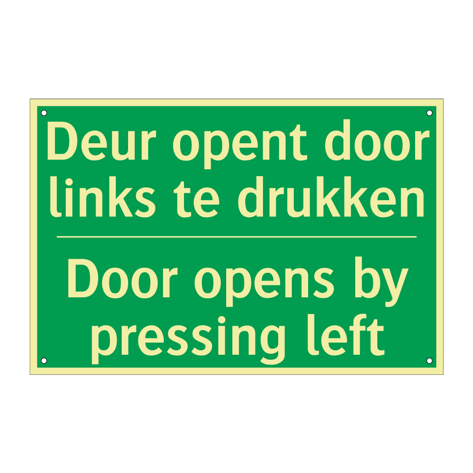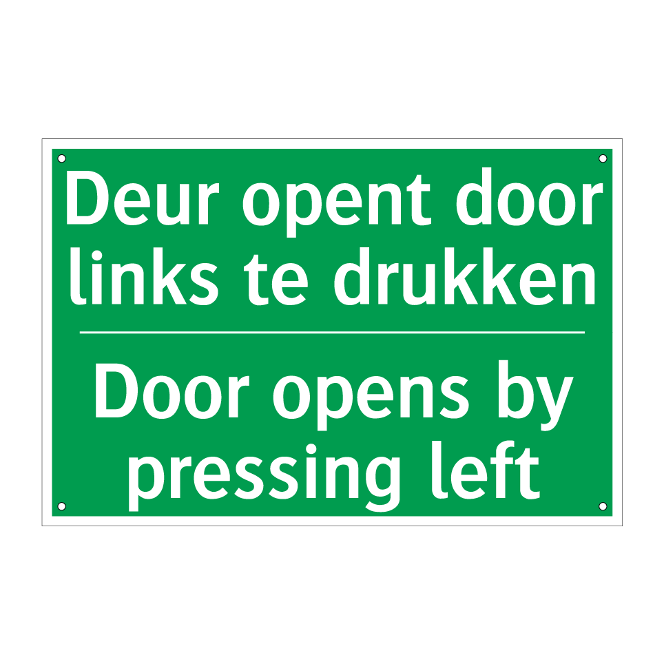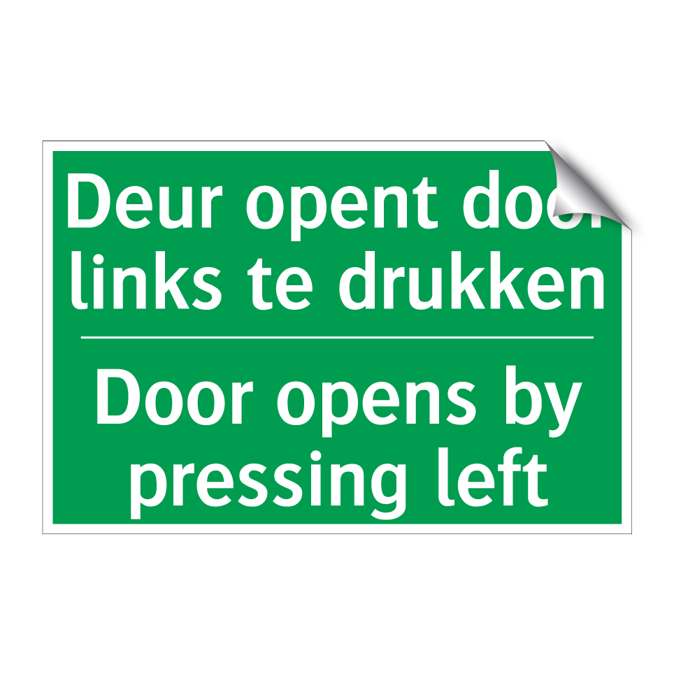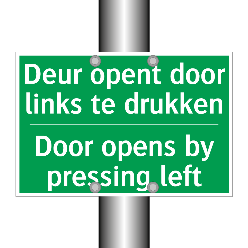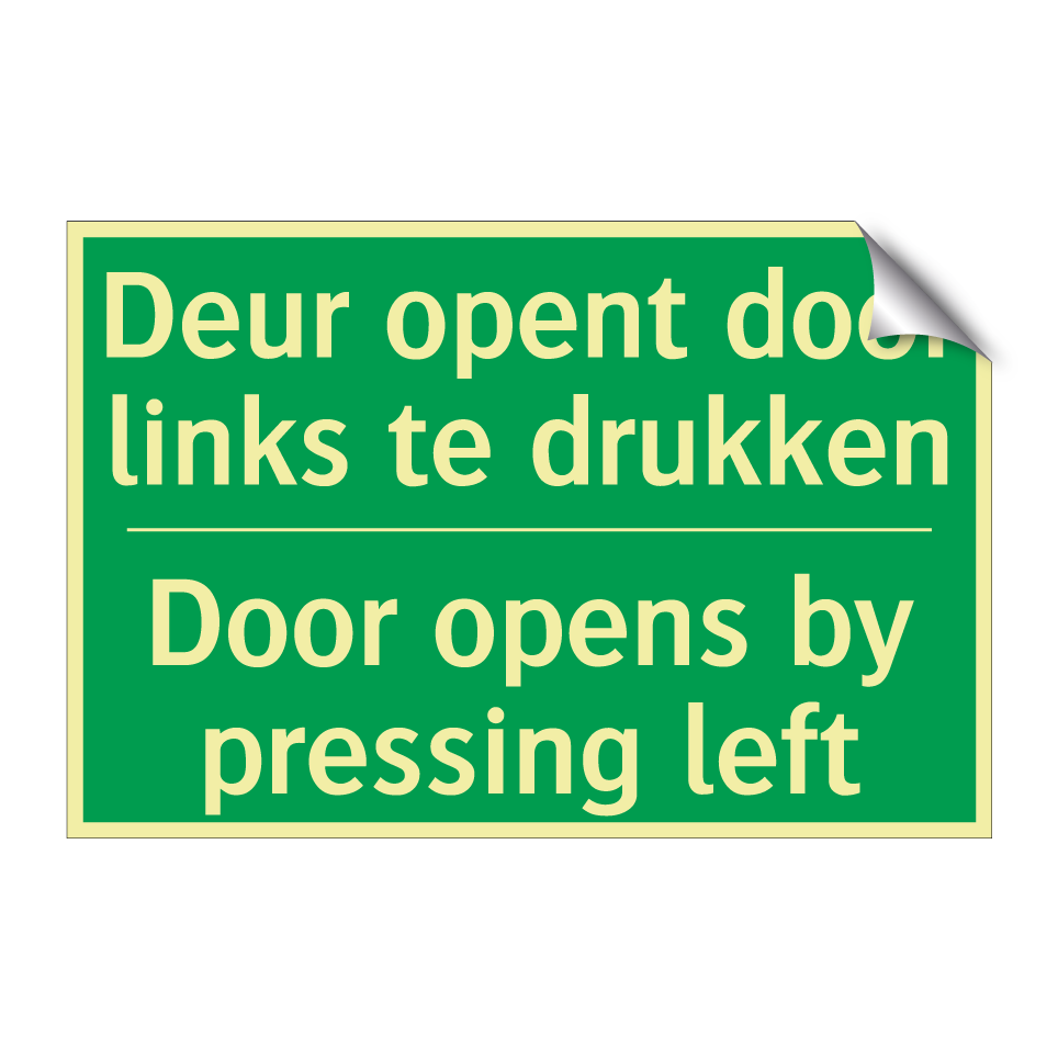 Noodbord met tekst Deur opent door links te drukken / Door opens by pressing left