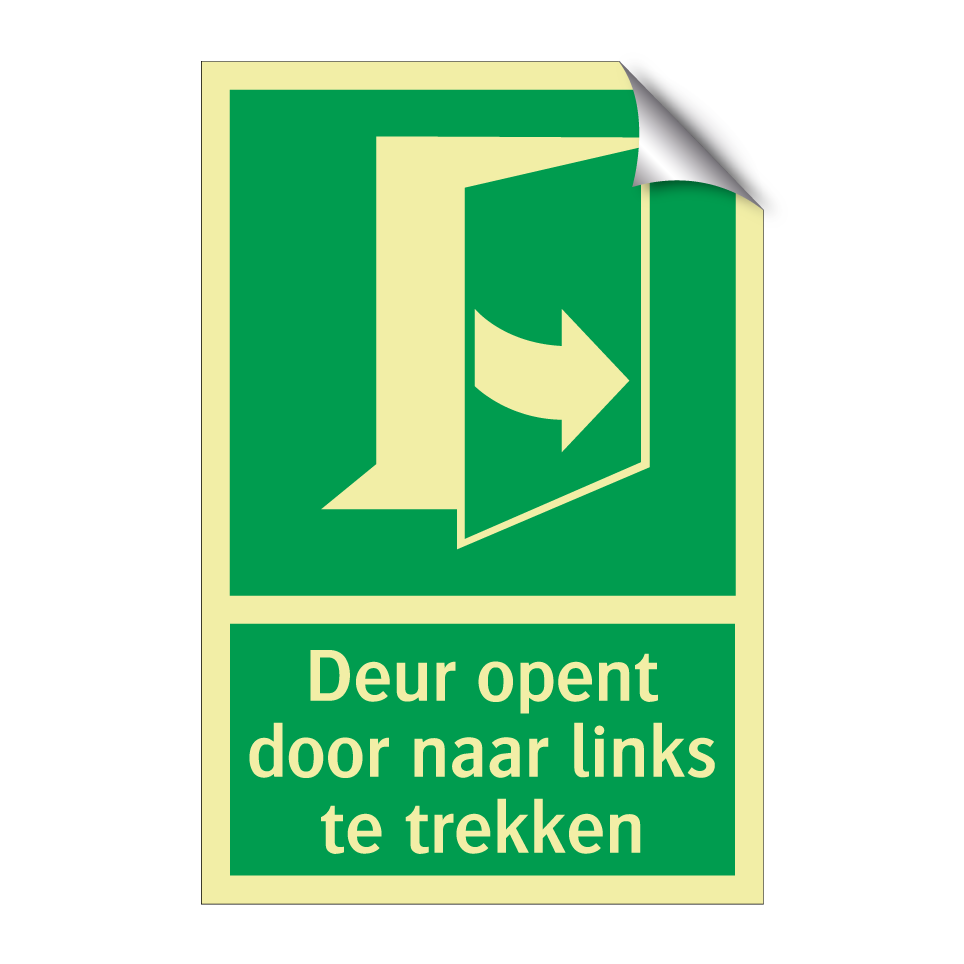Deze noodbord is essentieel voor de veiligheid in noodsituaties. Het bord geeft duidelijk aan dat de deur naar links moet worden getrokken om te openen, wat cruciaal kan zijn tijdens een evacuatie. Plaats dit noodbord bij nooduitgangen, trappenhuizen, en andere strategische locaties waar snelle en duidelijke instructies nodig zijn. Door de groene achtergrond en witte tekst is het bord goed zichtbaar, zelfs in slecht verlichte omgevingen. Dit noodbord helpt om paniek te verminderen en zorgt ervoor dat mensen snel en efficiënt kunnen ontsnappen in geval van nood.