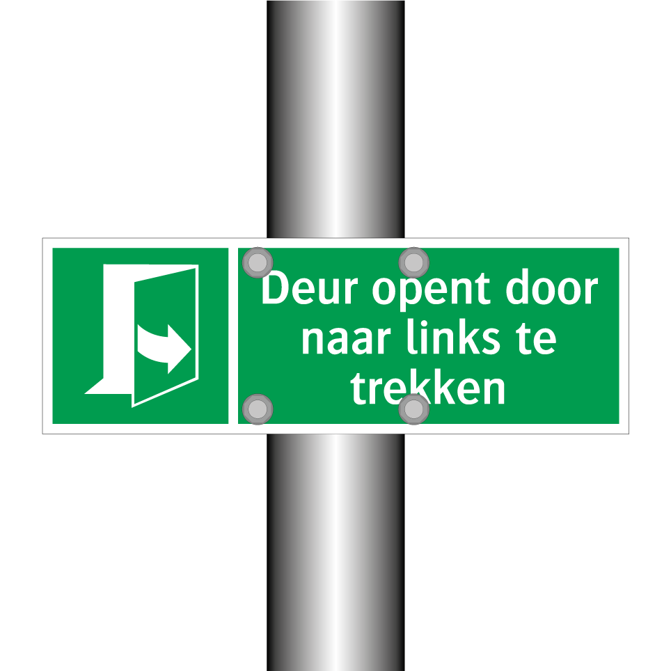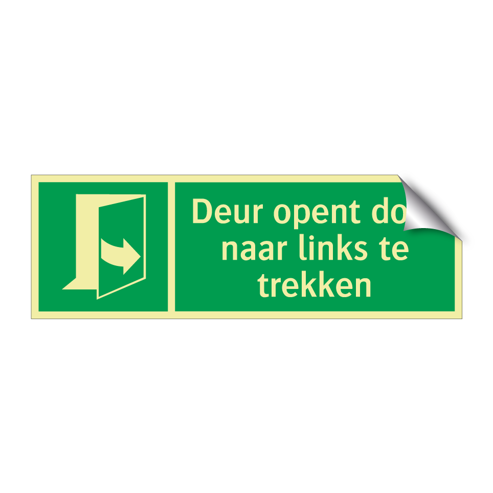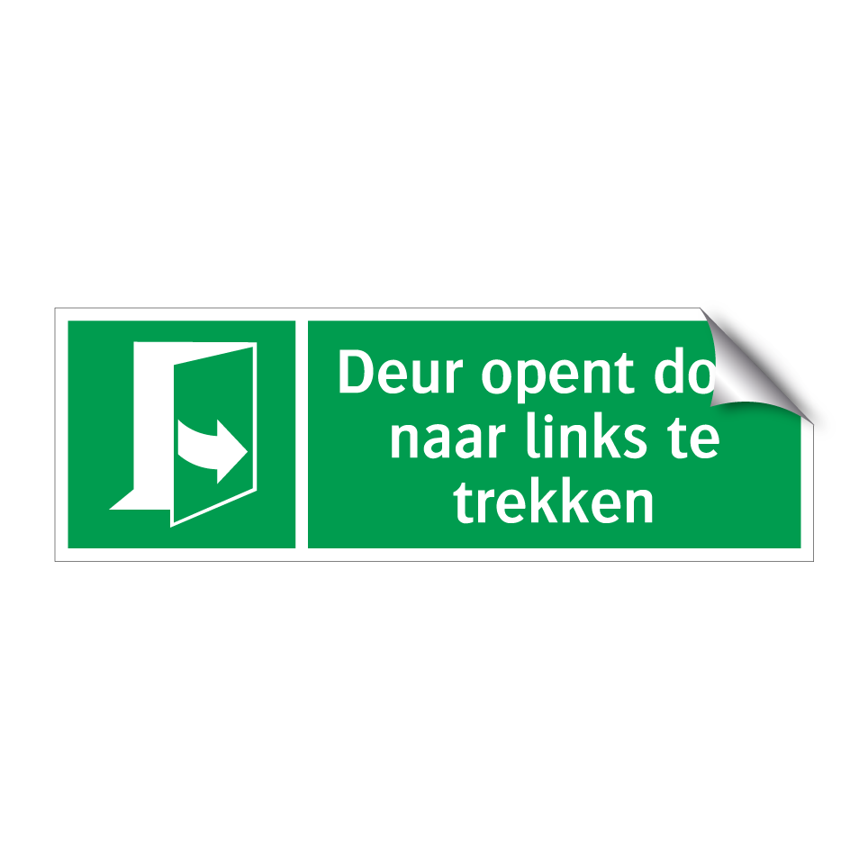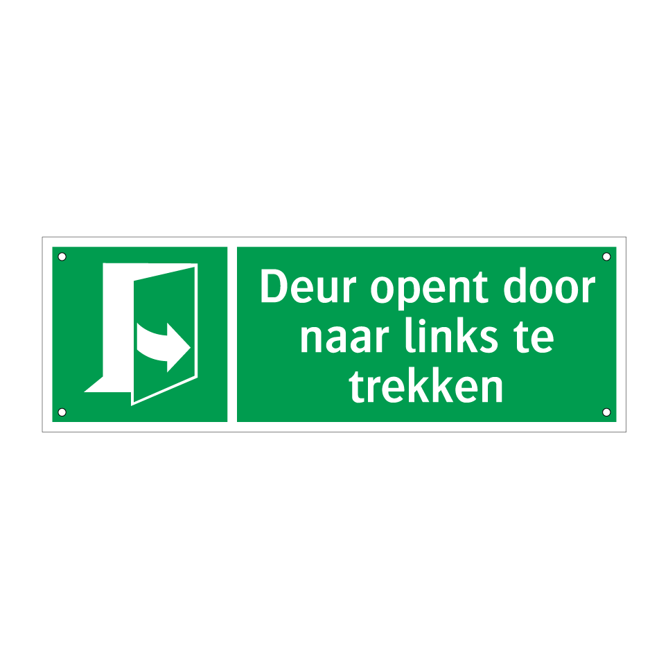 Deze noodbord is essentieel voor de veiligheid in noodsituaties. Het bord geeft duidelijk aan dat de deur naar links moet worden getrokken om te openen, wat cruciaal kan zijn tijdens een evacuatie. Plaats dit noodbord bij nooduitgangen, trappenhuizen, en andere strategische locaties waar snelle en duidelijke instructies nodig zijn. Door de groene achtergrond en witte tekst is het bord goed zichtbaar, zelfs in slecht verlichte omgevingen. Dit noodbord helpt om paniek te verminderen en zorgt ervoor dat mensen snel en efficiënt kunnen ontsnappen in geval van nood.