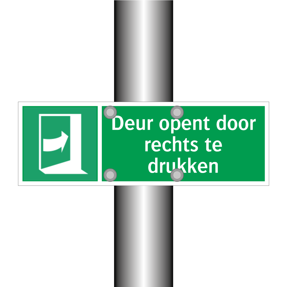 Deze noodbord is essentieel voor de veiligheid in elke omgeving. Het bord geeft duidelijk aan dat de deur geopend kan worden door naar rechts te drukken, wat cruciaal is in noodsituaties. Plaats dit noodbord bij uitgangen, nooddeuren of andere strategische locaties waar snelle evacuatie noodzakelijk is. Ideaal voor gebruik in kantoren, scholen, ziekenhuizen en openbare gebouwen. De groene achtergrond met witte tekst en symbool zorgt voor maximale zichtbaarheid, zelfs in slecht verlichte omstandigheden. Zorg voor een veilige omgeving door dit noodbord op de juiste plekken te installeren.