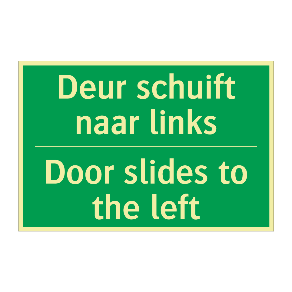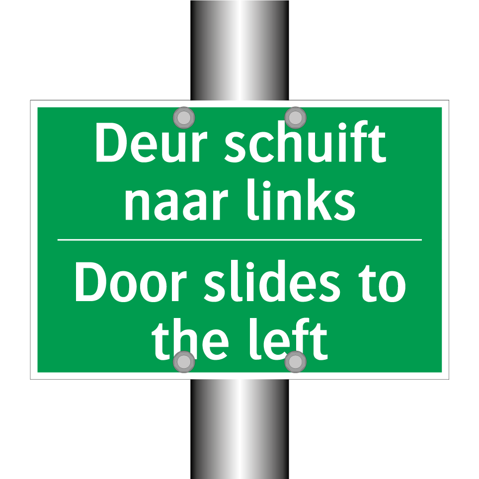 Noodbord met tekst Deur schuift naar links / Door slides to the left