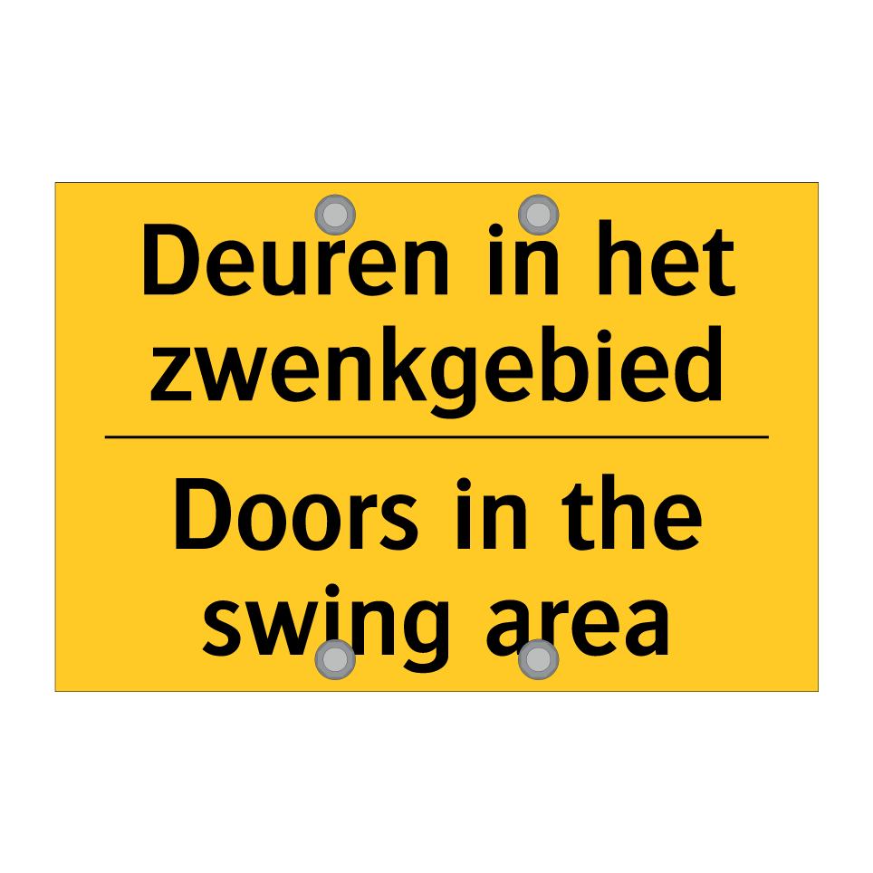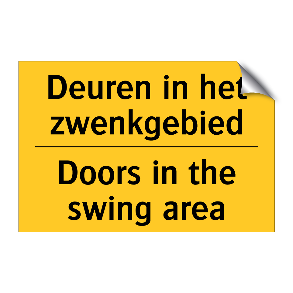 Waarschuwingsbord met de tekst Deuren in het zwenkgebied / Doors in the swing area