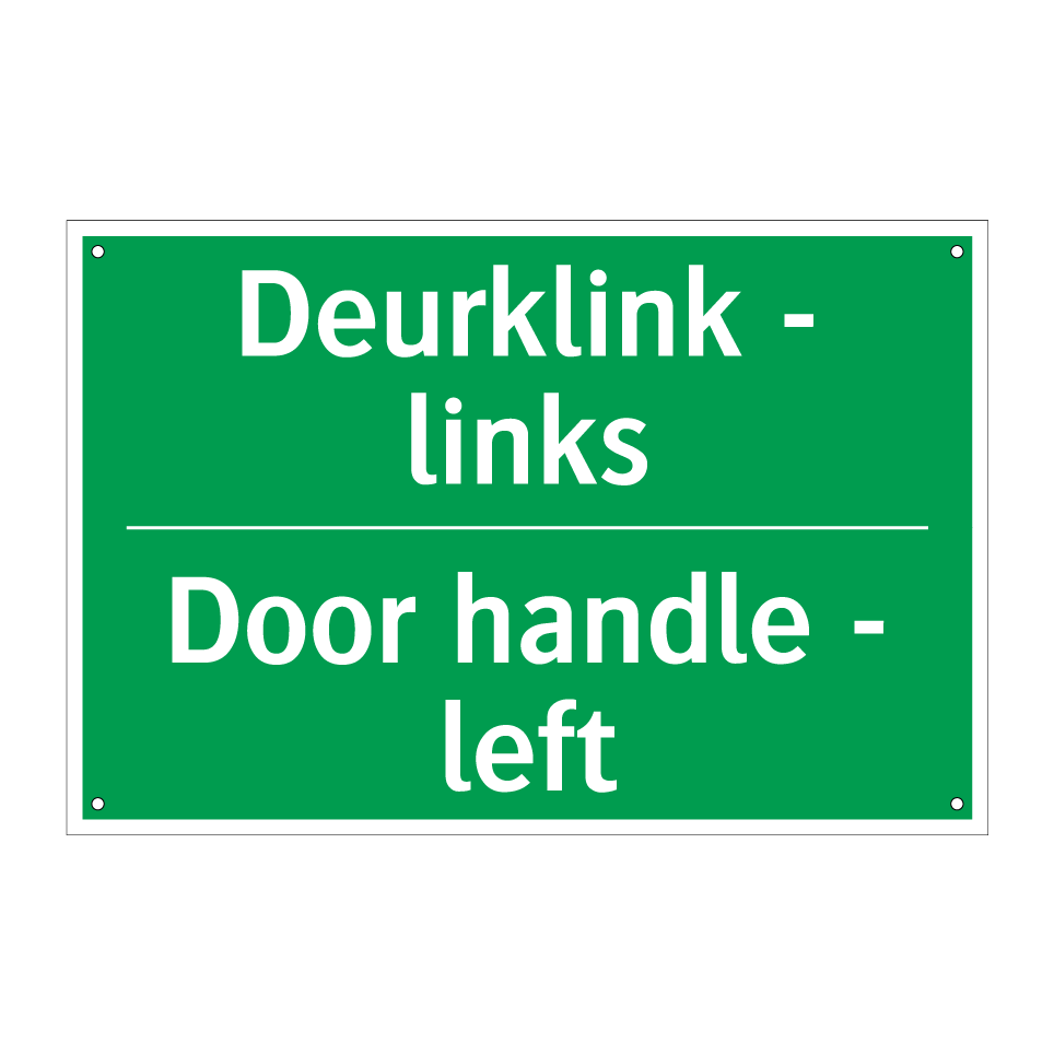 Dit noodbord is essentieel voor een veilige en georganiseerde omgeving. De groene achtergrond met witte tekst zorgt voor duidelijke zichtbaarheid, zelfs in noodsituaties. Deze tweetalige noodbord, met tekst in zowel het Nederlands als Engels, is ideaal voor internationale locaties zoals kantoren, hotels, en openbare gebouwen. Het geeft duidelijk aan waar de deurklink zich bevindt, wat cruciaal is voor een snelle evacuatie. Door de tweetalige opmaak wordt de toegankelijkheid vergroot en kunnen zowel Nederlandstalige als Engelstalige personen de instructies moeiteloos begrijpen. Plaats dit noodbord bij deuren om de veiligheid en efficiëntie te waarborgen.