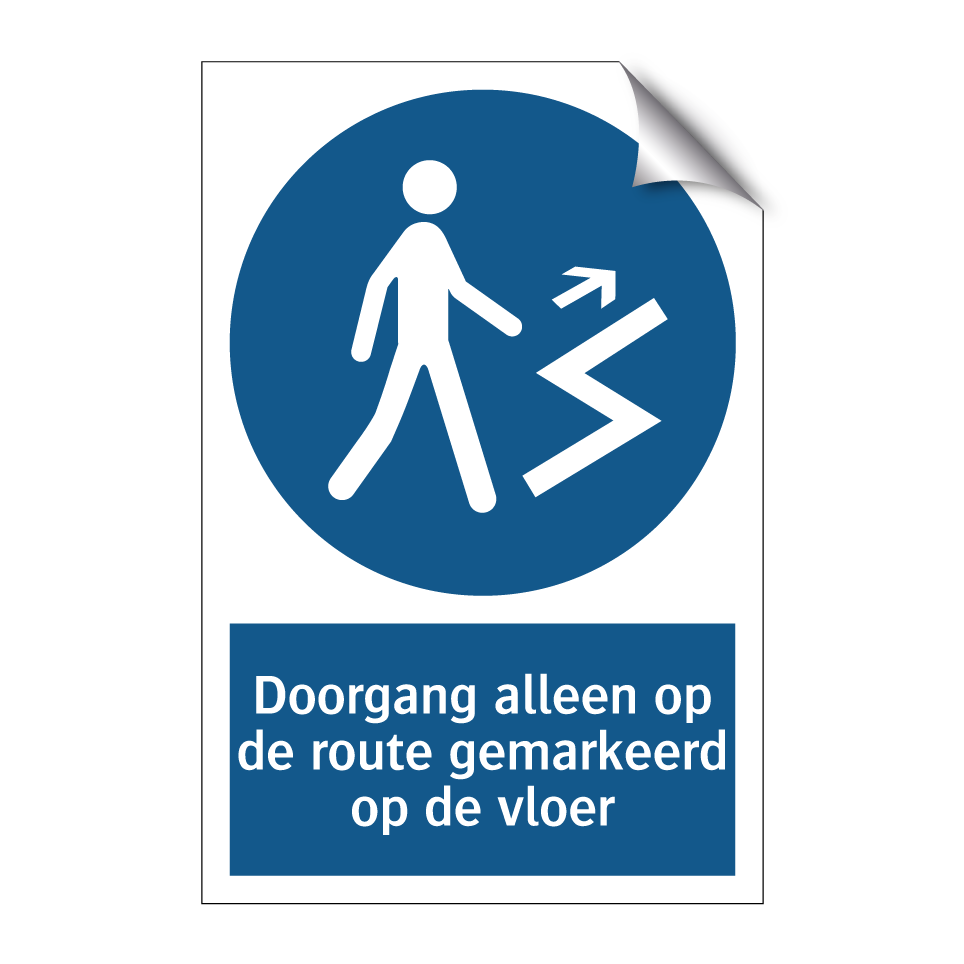 Deze verplichte bord zorgt voor een duidelijke en veilige doorgang door alleen toegang te verlenen via de gemarkeerde route op de vloer. Ideaal voor gebruik in magazijnen, fabrieken en andere industriële omgevingen waar het belangrijk is om voetgangersstromen te reguleren en ongelukken te voorkomen. Plaats deze bord bij ingangen, gangen of andere strategische locaties om ervoor te zorgen dat iedereen de aangegeven route volgt. Dit bordje helpt niet alleen bij het handhaven van de orde, maar draagt ook bij aan een georganiseerde en efficiënte werkomgeving.