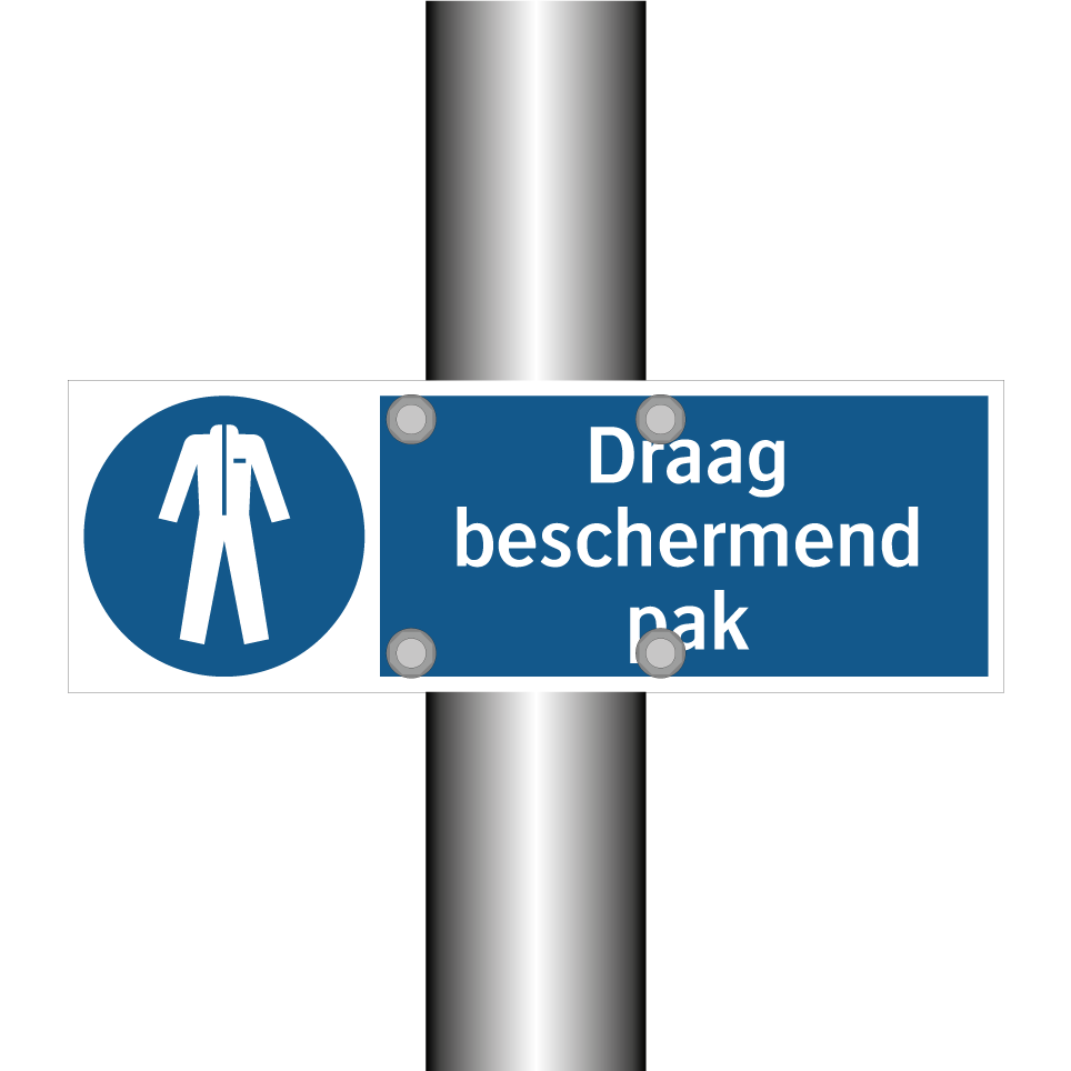 Deze verplichte bord is essentieel voor het waarborgen van de veiligheid op werkplekken waar beschermende kleding verplicht is. Ideaal voor gebruik in industriële omgevingen, laboratoria, bouwplaatsen en andere risicovolle gebieden. Plaats deze bord bij ingangen, kleedkamers of andere strategische locaties om werknemers en bezoekers te herinneren aan het dragen van beschermende pakken. Door deze duidelijke en opvallende signalisatie te gebruiken, wordt het risico op ongevallen verminderd en wordt een veilige werkomgeving bevorderd. Verhoog de naleving van veiligheidsvoorschriften met deze effectieve en zichtbare waarschuwing.