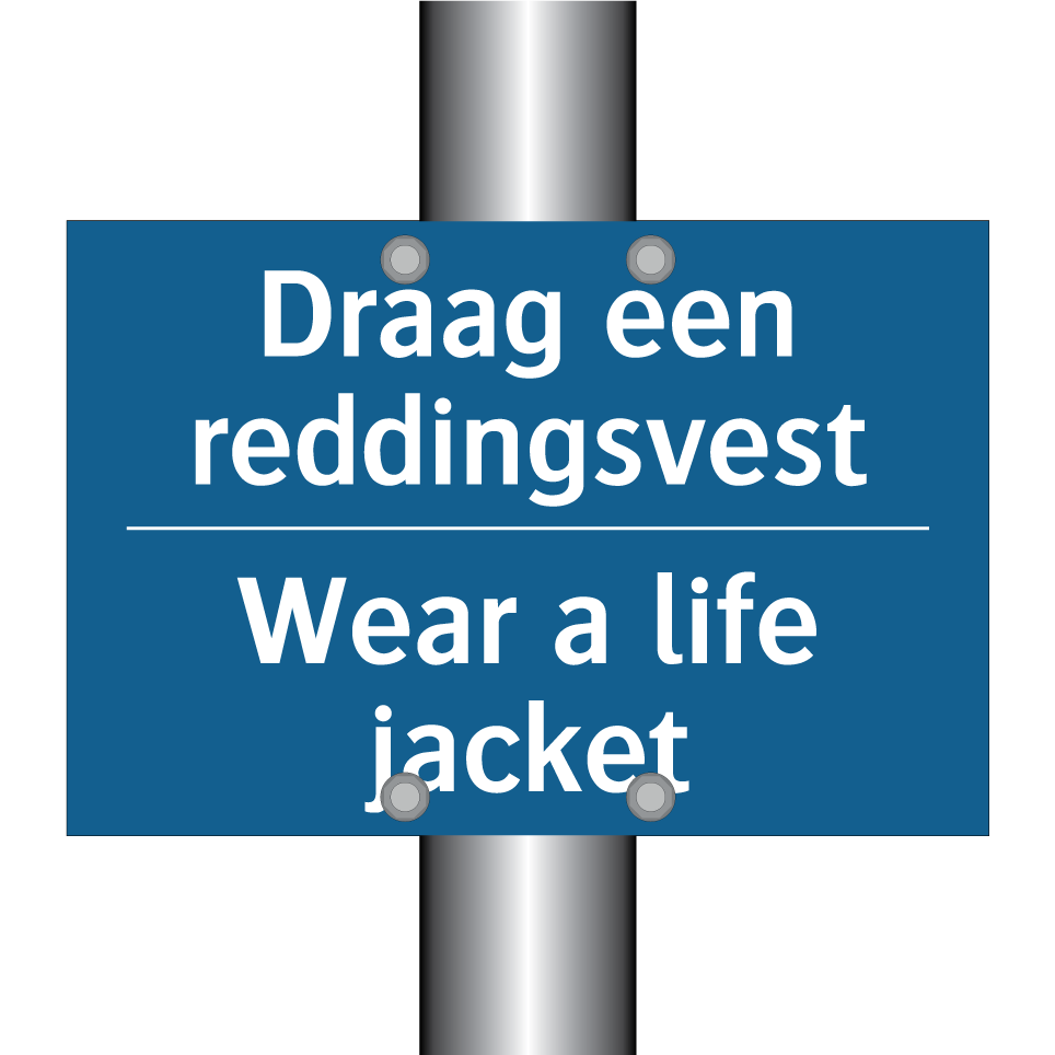 Verplichte bord met de tekst Draag een reddingsvest - Wear a life jacket