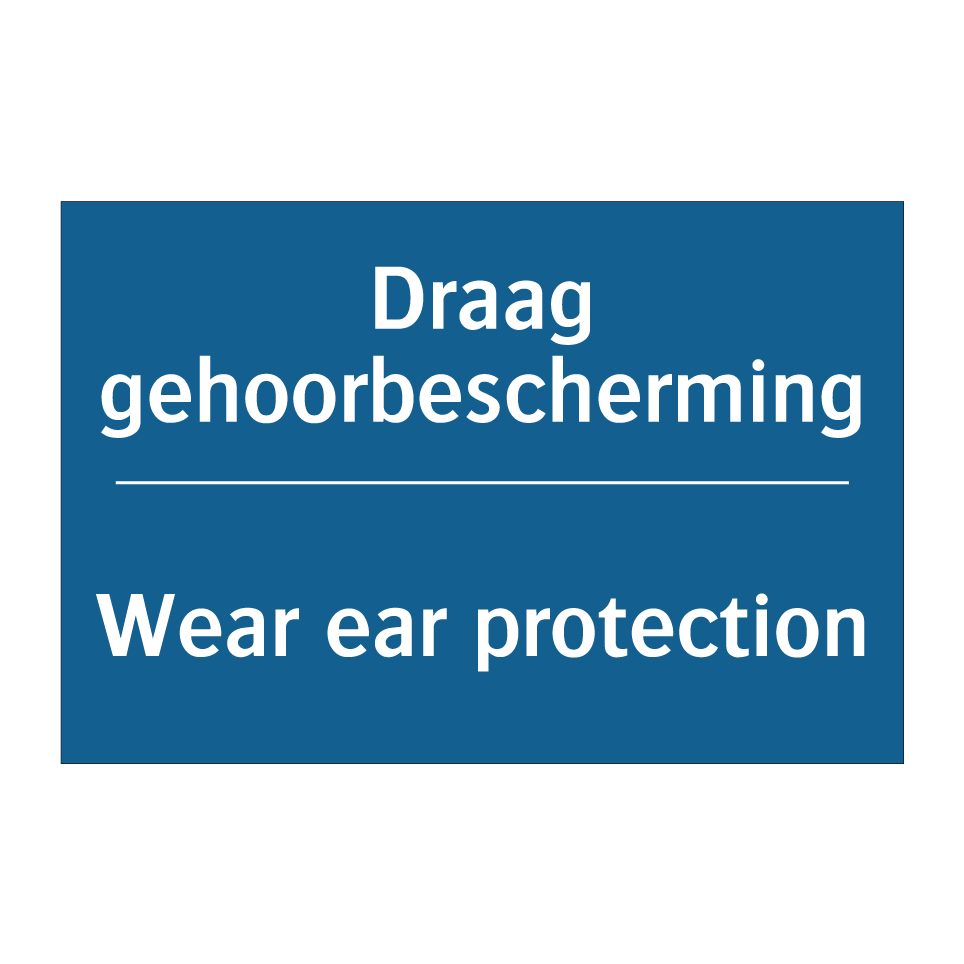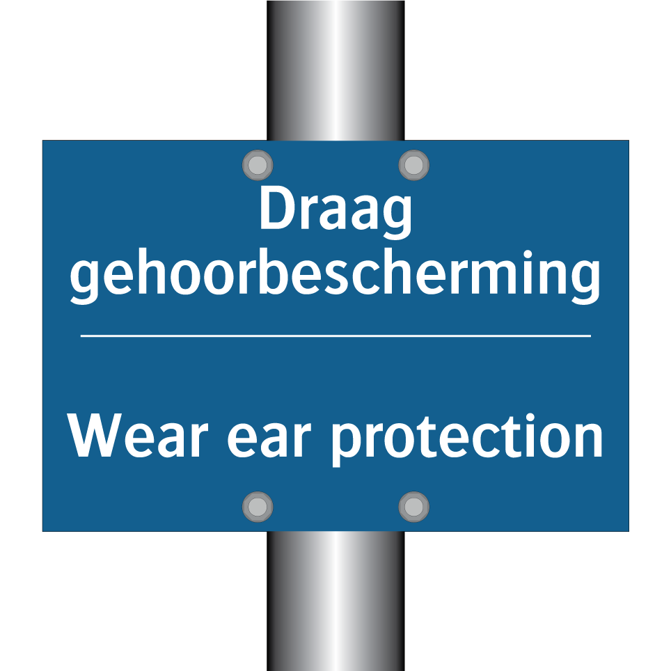 Verplichte bord met de tekst Draag gehoorbescherming - Wear ear protection