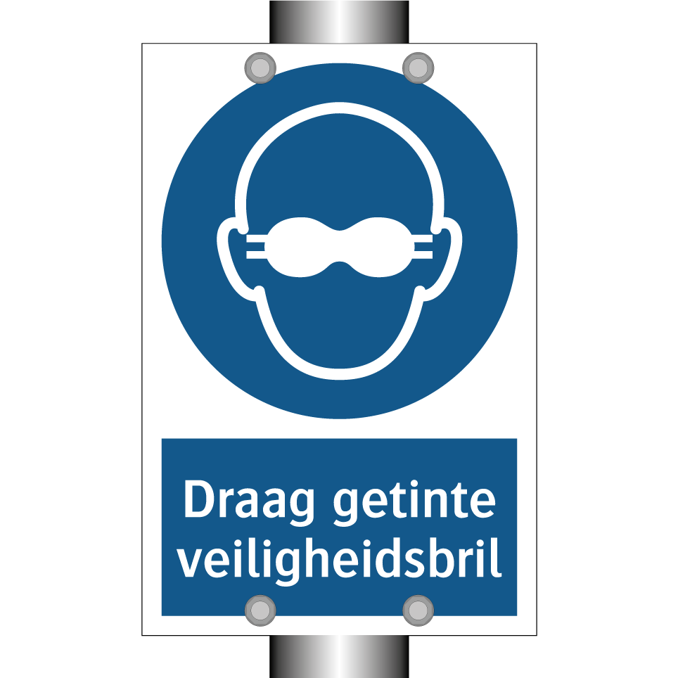 Verplichte bord met de tekst Draag getinte veiligheidsbril