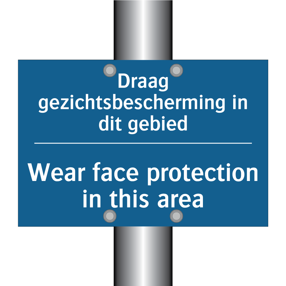 Verplichte bord met de tekst Draag gezichtsbescherming in dit gebied - Wear face protection in this area