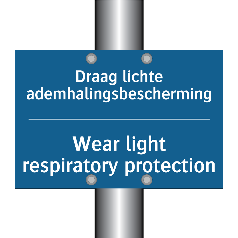 Verplichte bord met de tekst Draag lichte ademhalingsbescherming - Wear light respiratory protection