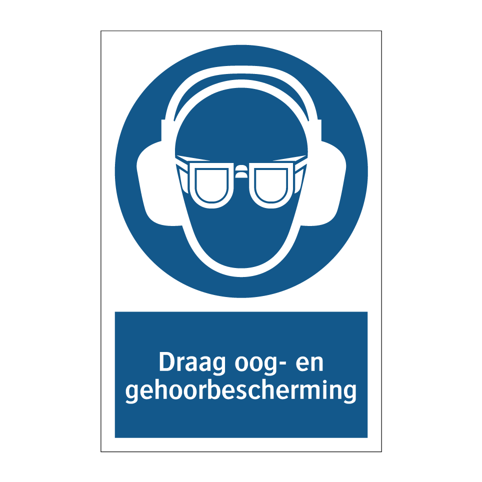 Deze verplichte bord is essentieel voor het waarborgen van de veiligheid op werkplekken waar oog- en gehoorbescherming verplicht is. Ideaal voor gebruik in industriële omgevingen zoals fabrieken, werkplaatsen en bouwplaatsen. Plaats deze bord bij ingangen van risicovolle zones, nabij machines of in ruimtes waar harde geluiden en rondvliegende deeltjes voorkomen. Door deze duidelijke en zichtbare waarschuwing te plaatsen, zorgt u ervoor dat werknemers en bezoekers zich bewust zijn van de noodzaak om beschermende uitrusting te dragen, wat bijdraagt aan een veilige werkomgeving.