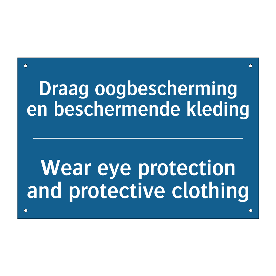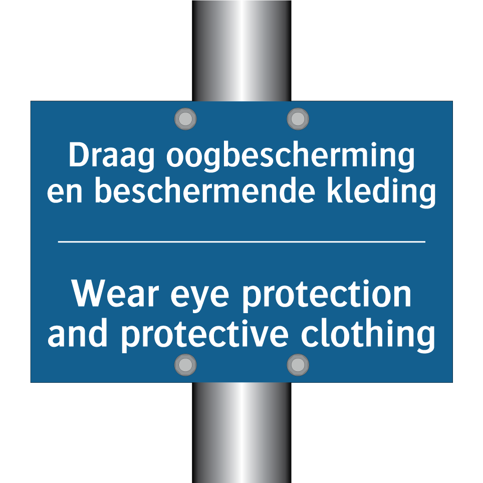 Verplichte bord met de tekst Draag oogbescherming en beschermende kleding - Wear eye protection and protective clothing