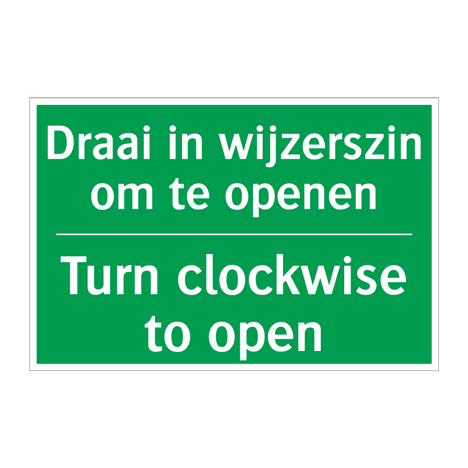 Noodbord met tekst Draai in wijzerszin om te openen / Turn clockwise to open.