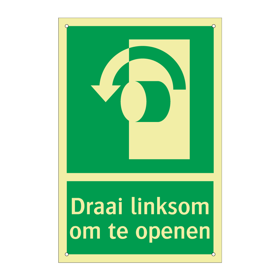 Deze noodbord is essentieel voor elke werkplek of openbare ruimte waar veiligheid voorop staat. Het bord geeft duidelijk aan dat men naar links moet draaien om te openen, wat cruciaal kan zijn in noodsituaties. Plaats Dit bordje bij nooduitgangen, branddeuren of andere kritieke punten waar snelle toegang vereist is. Door de opvallende groene kleur en witte tekst is het bord gemakkelijk te herkennen, zelfs van een afstand. Ideaal voor kantoren, fabrieken, scholen en andere instellingen waar een snelle evacuatie noodzakelijk kan zijn. Zorg voor een veilige omgeving door dit noodbord strategisch te plaatsen.