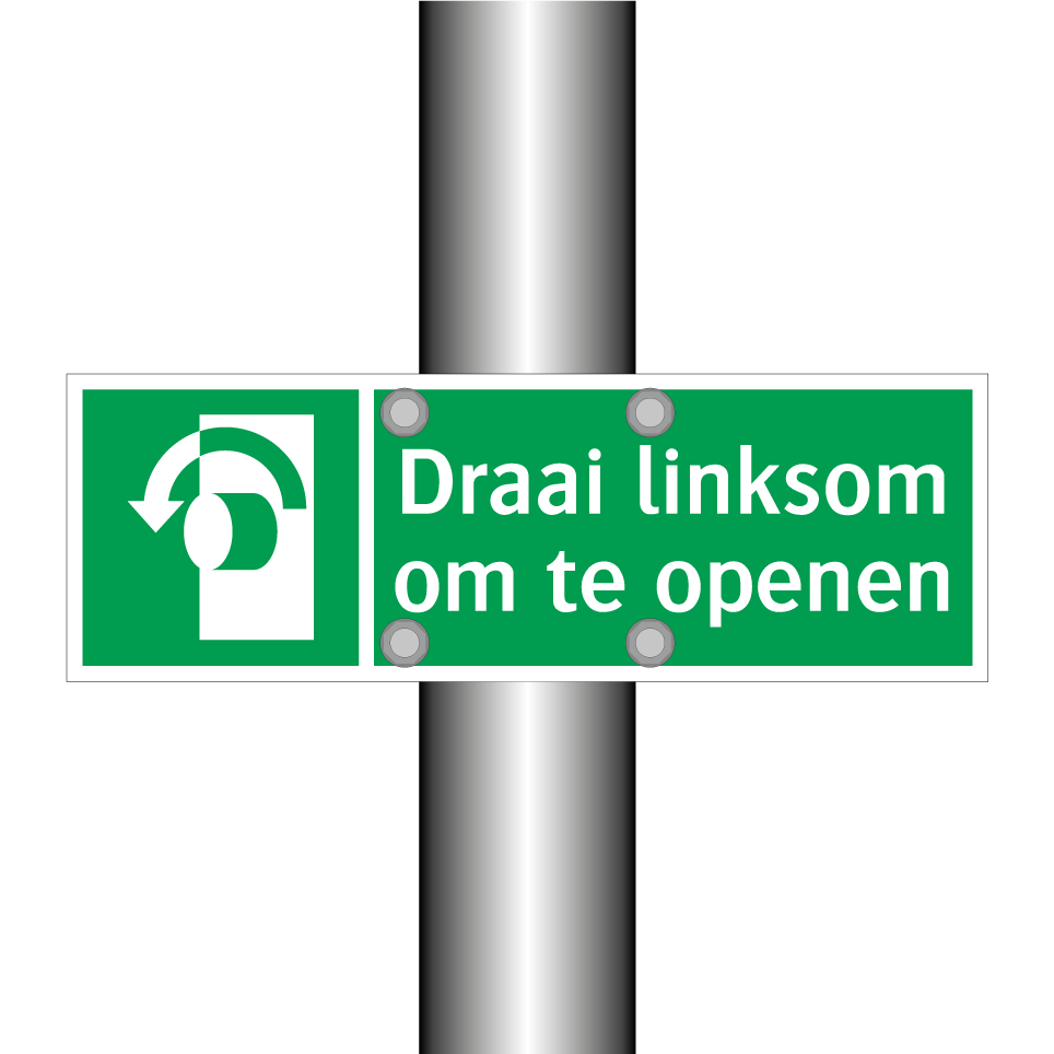 Deze noodbord is essentieel voor elke werkplek of openbare ruimte waar veiligheid voorop staat. Het bord geeft duidelijk aan dat men naar links moet draaien om te openen, wat cruciaal kan zijn in noodsituaties. Plaats Dit bordje bij nooduitgangen, branddeuren of andere kritieke punten waar snelle toegang vereist is. Door de opvallende groene kleur en witte tekst is het bord gemakkelijk te herkennen, zelfs van een afstand. Ideaal voor kantoren, fabrieken, scholen en andere instellingen waar een snelle evacuatie noodzakelijk kan zijn. Zorg voor een veilige omgeving door dit noodbord strategisch te plaatsen.