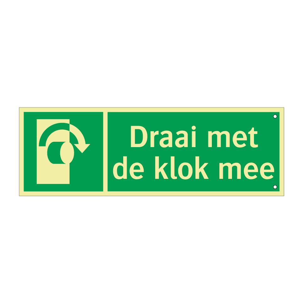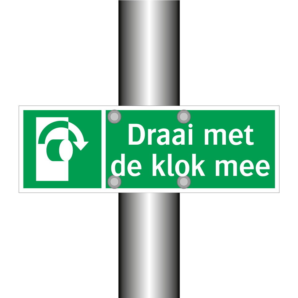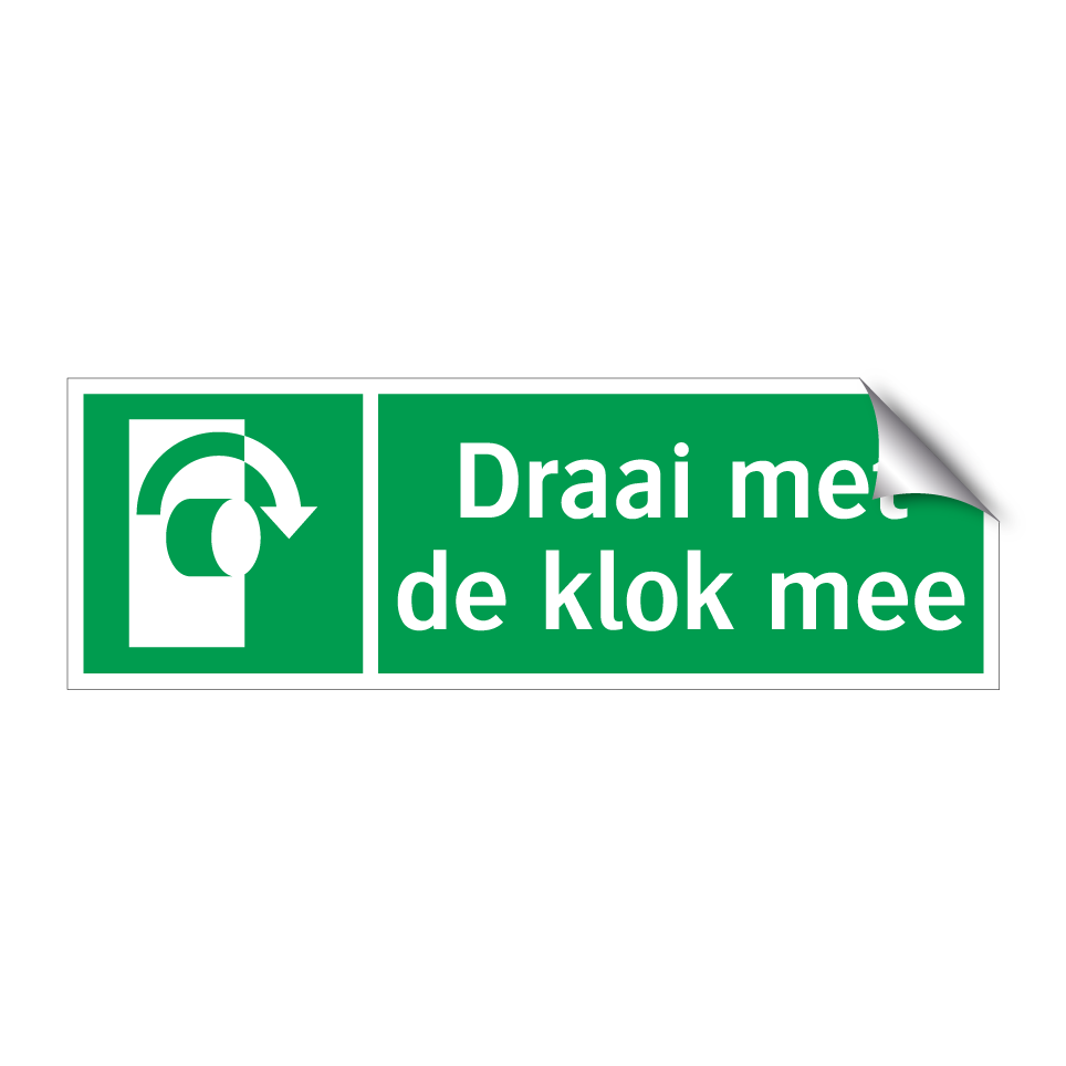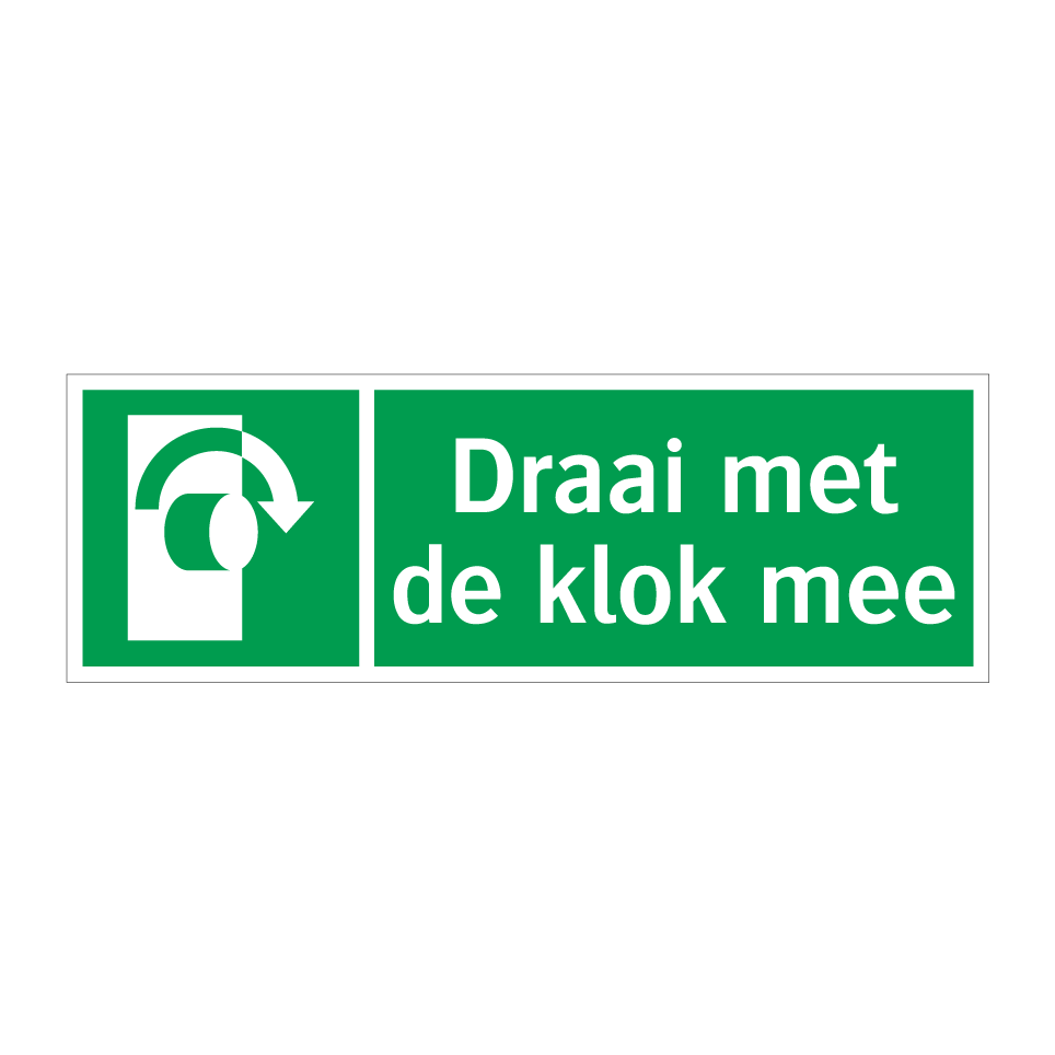 Deze noodbord is essentieel voor elke werkplek of openbare ruimte waar veiligheid een prioriteit is. Het bord geeft duidelijk aan dat men met de klok mee moet draaien, wat cruciaal kan zijn in noodsituaties. Plaats Dit bordje op goed zichtbare locaties zoals bij nooduitgangen, naast brandblussers of bij machines die in geval van nood moeten worden uitgeschakeld. Door de opvallende groene kleur en de witte tekst met symbool, trekt het direct de aandacht en zorgt het voor snelle en correcte handelingen. Ideaal voor kantoren, fabrieken, scholen en andere instellingen waar veiligheid voorop staat.