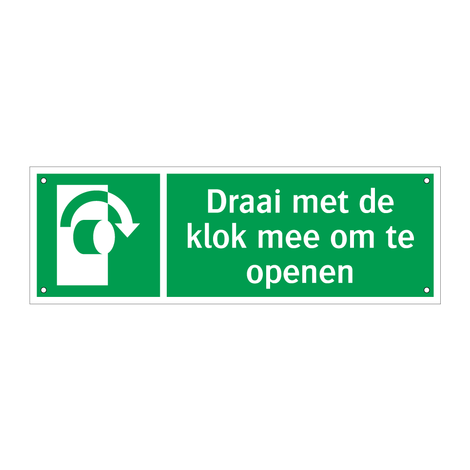 Deze noodbord is essentieel voor elke werkplek of openbare ruimte waar veiligheid prioriteit is. Het bord geeft duidelijk aan hoe een nooduitgang of veiligheidsvoorziening te openen, wat cruciaal is in geval van een noodsituatie. Plaats Dit bordje op goed zichtbare locaties zoals bij nooduitgangen, naast brandblussers of bij andere veiligheidsapparatuur. Door de opvallende groene kleur en de witte tekst met symbool, is het bord gemakkelijk te herkennen en te begrijpen, zelfs in stressvolle situaties. Zorg voor een veilige omgeving door dit noodbord strategisch te plaatsen waar snelle toegang tot veiligheidsvoorzieningen noodzakelijk is.