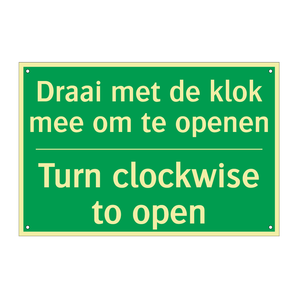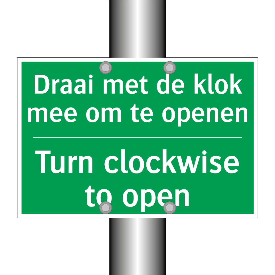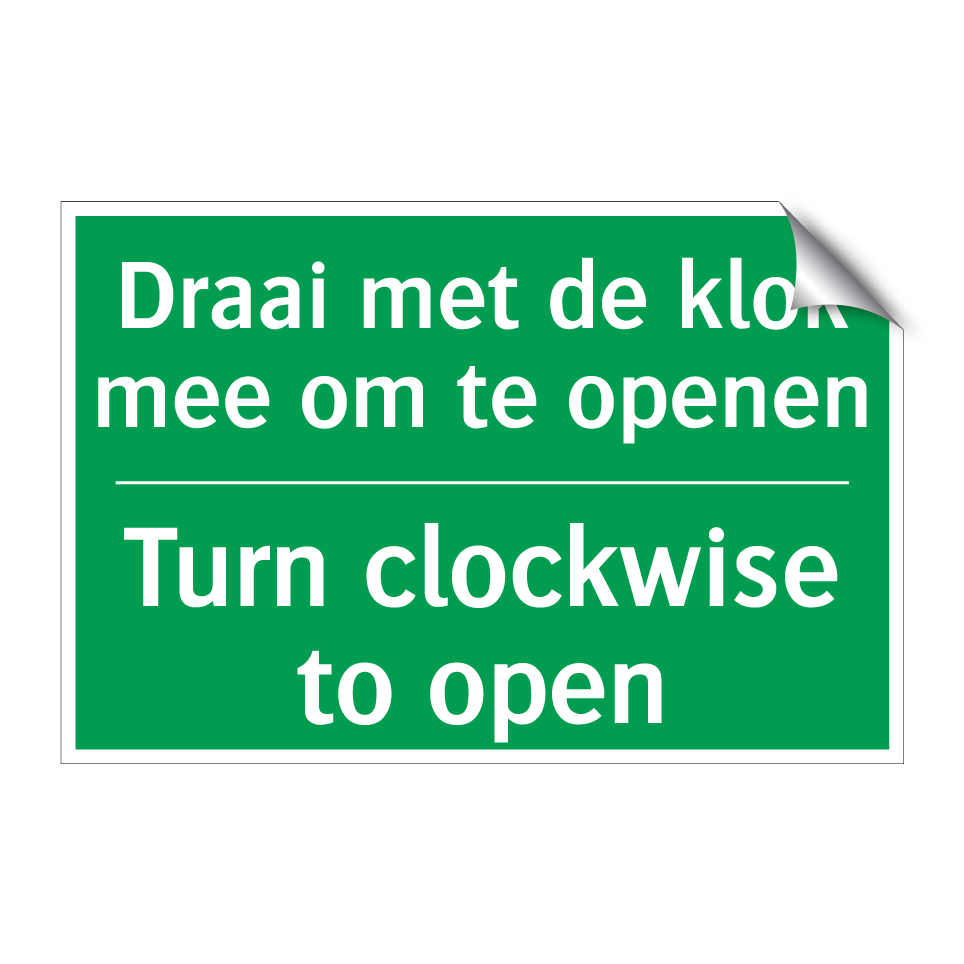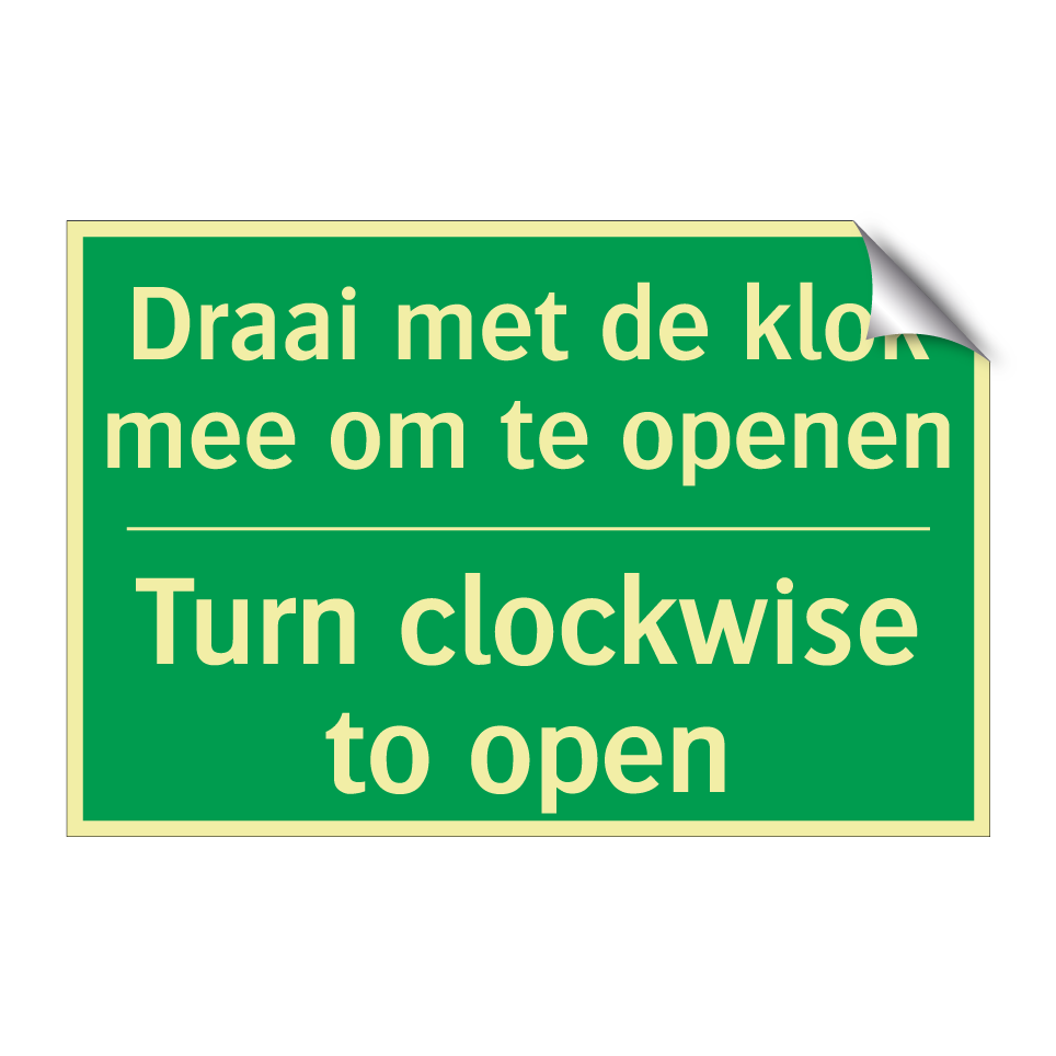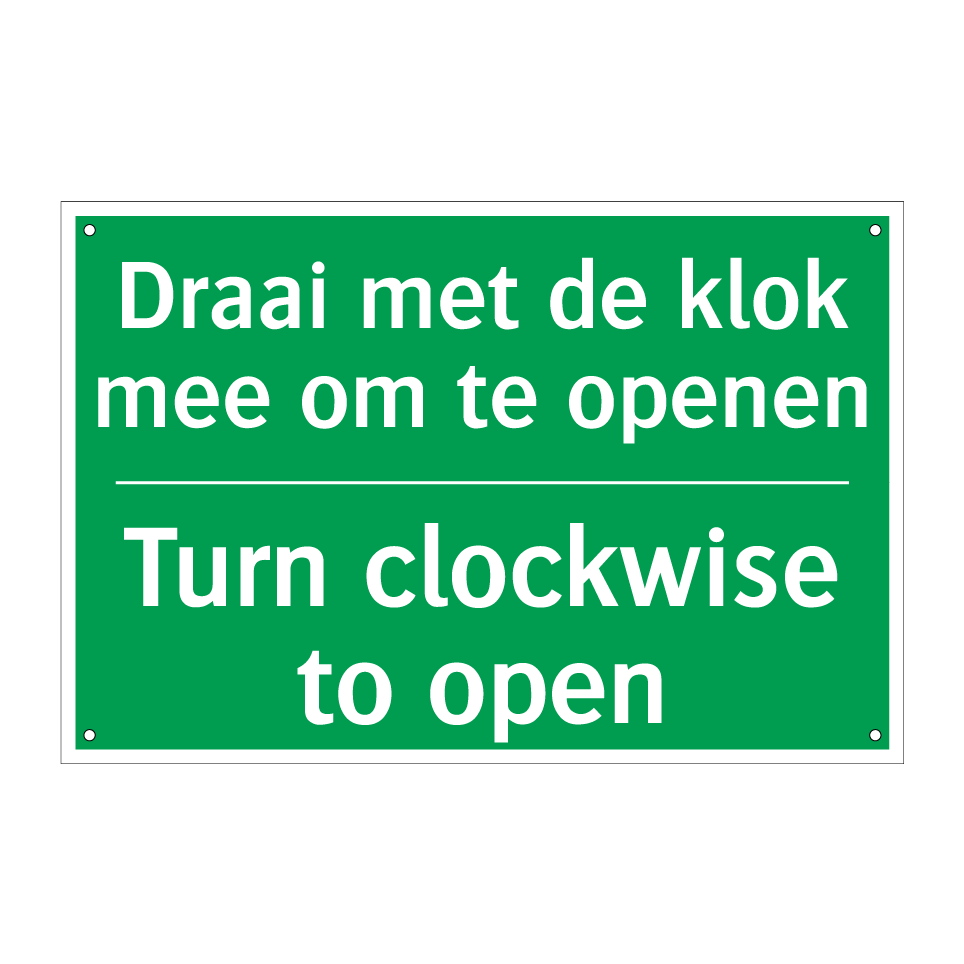 Noodbord met tekst Draai met de klok mee om te openen / Turn clockwise to open