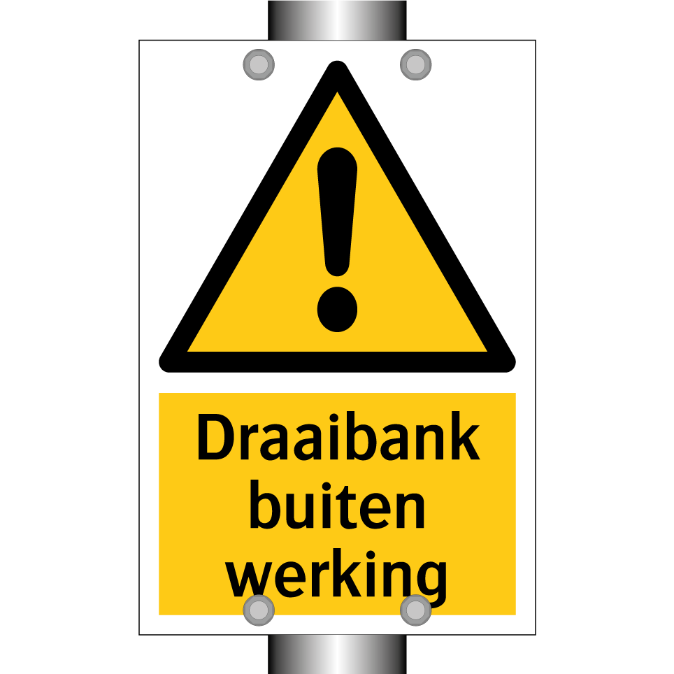 Waarschuwingsbord met de tekst Draaibank buiten werking