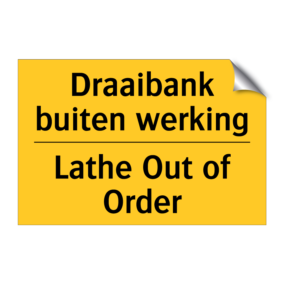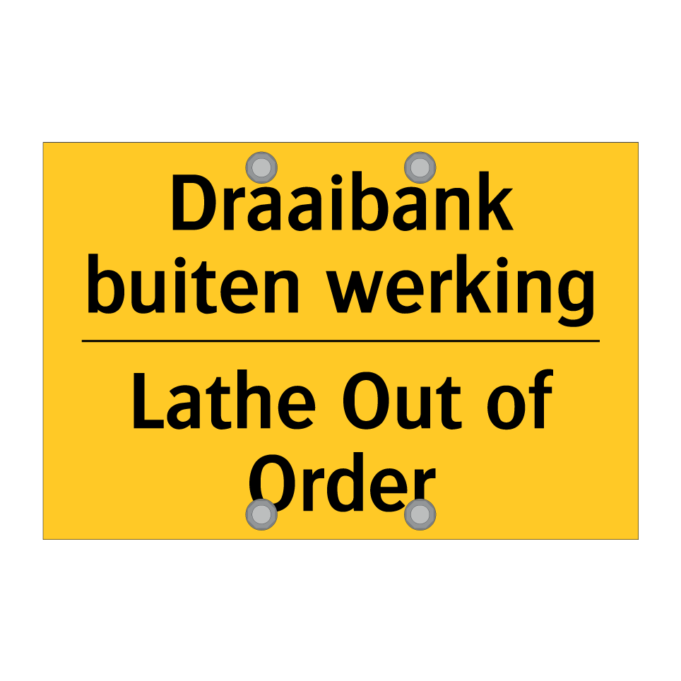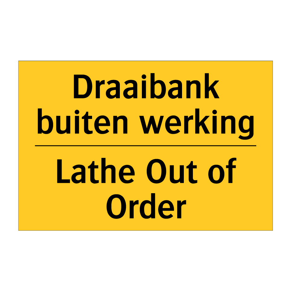 Waarschuwingsbord met de tekst Draaibank buiten werking / Lathe Out of Order