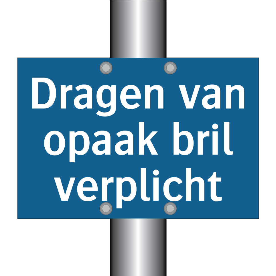 Verplichte bord met de tekst Dragen van opaak bril verplicht