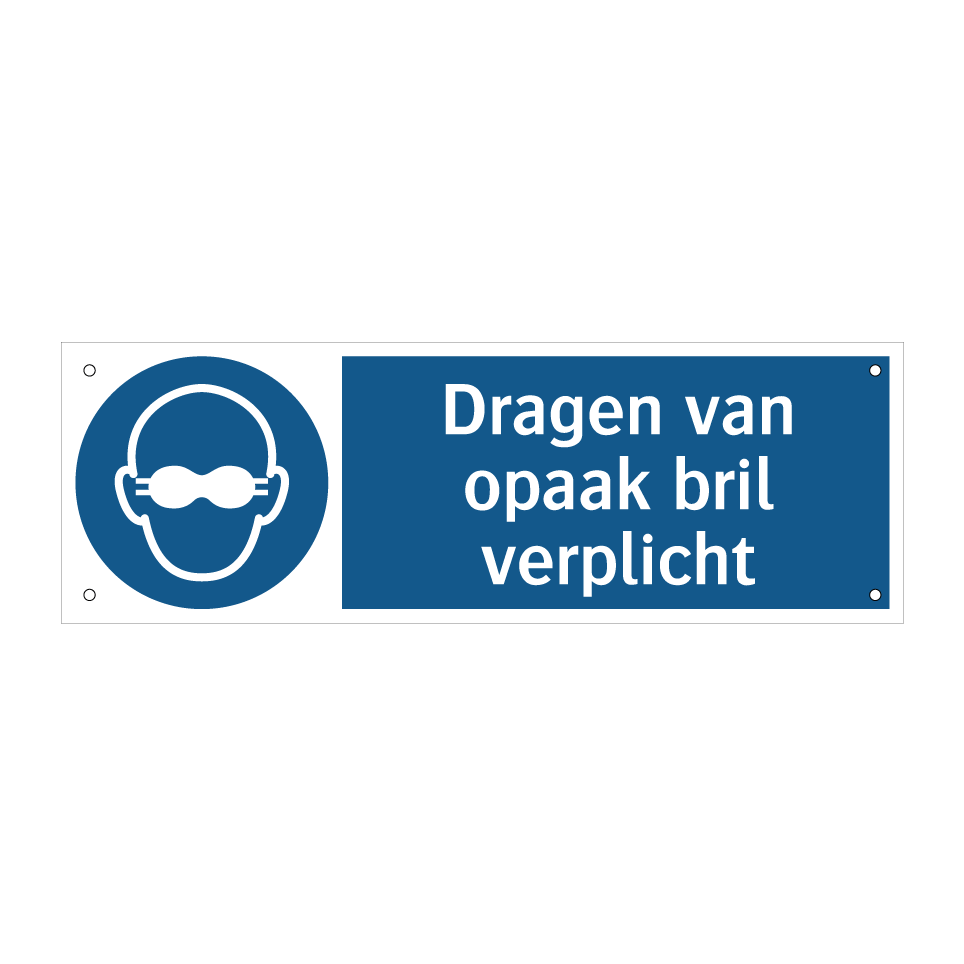 Verplichte bord met de tekst Dragen van opaak bril verplicht