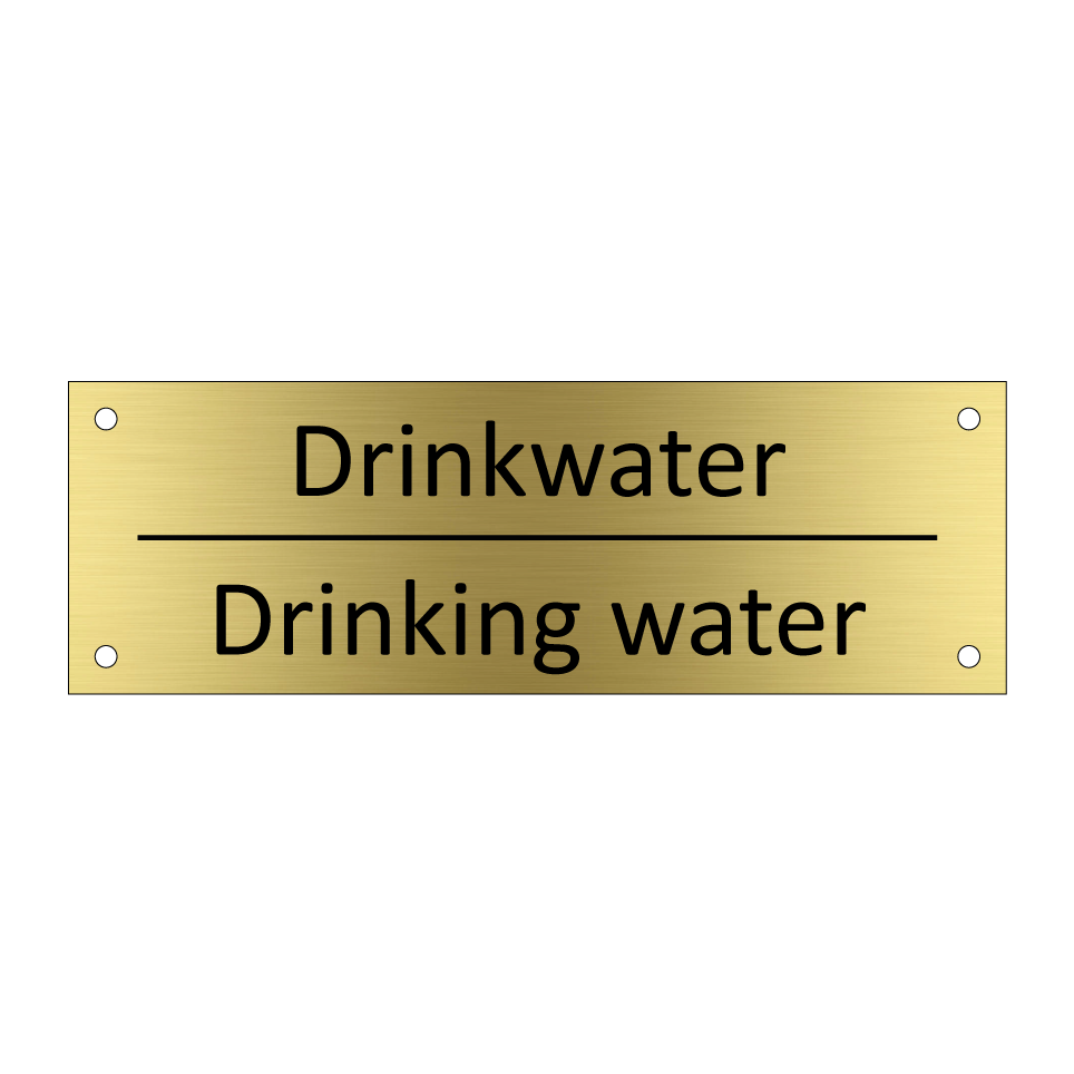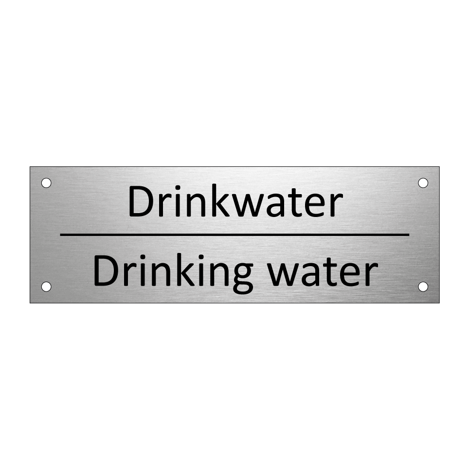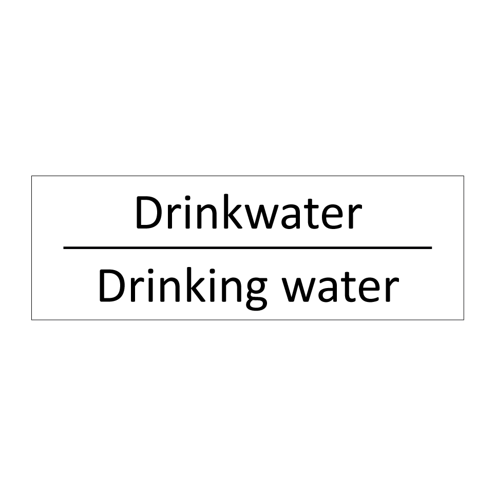 Informatiebord met tekst in het nederlands en engels. Dit bord luidt: Drinkwater evenals met de engelse vertaling Drinking water.