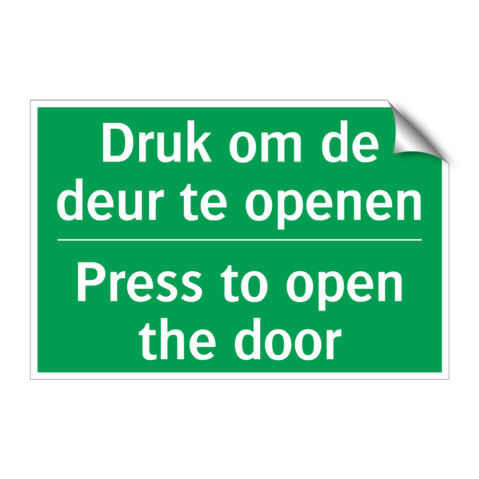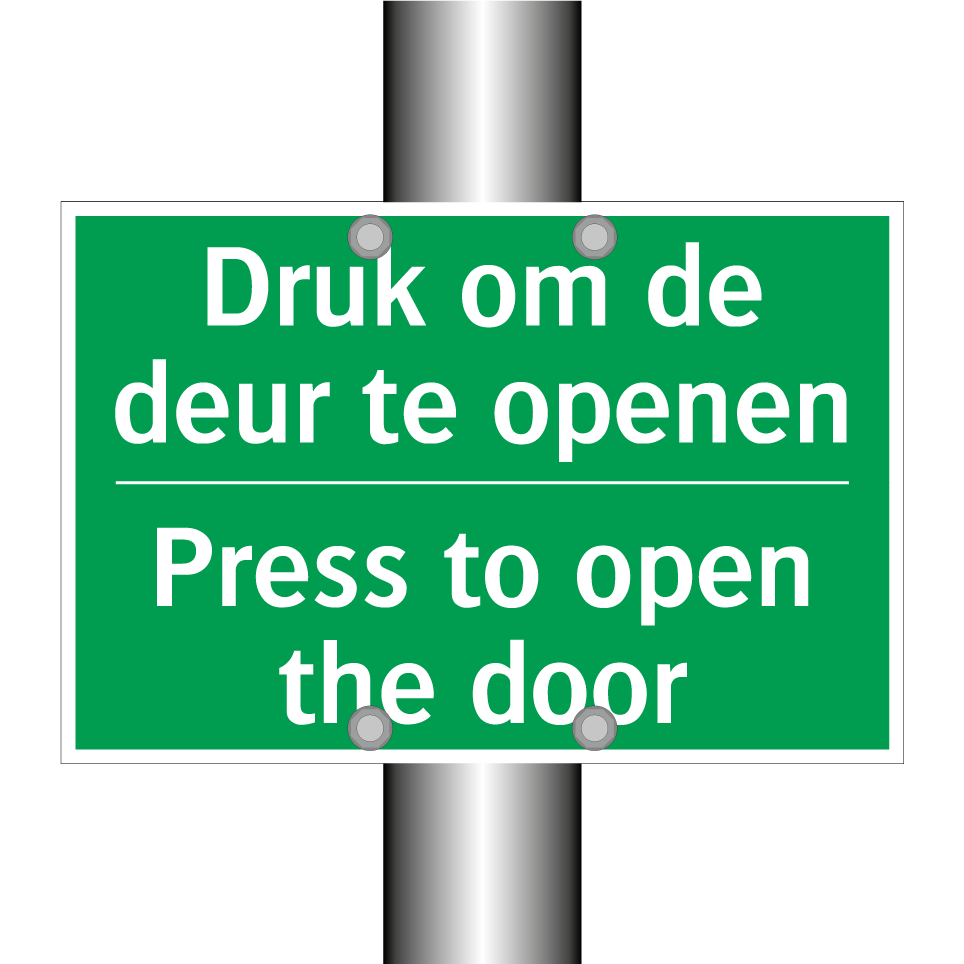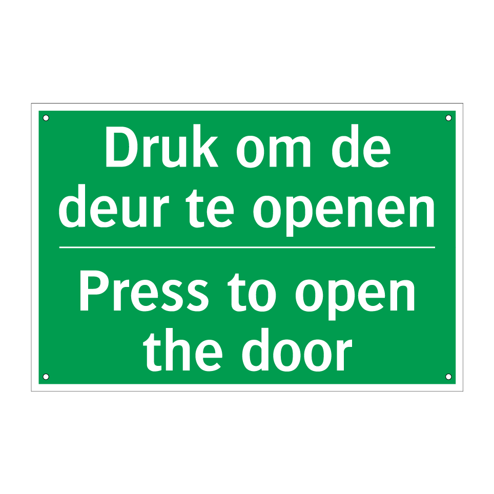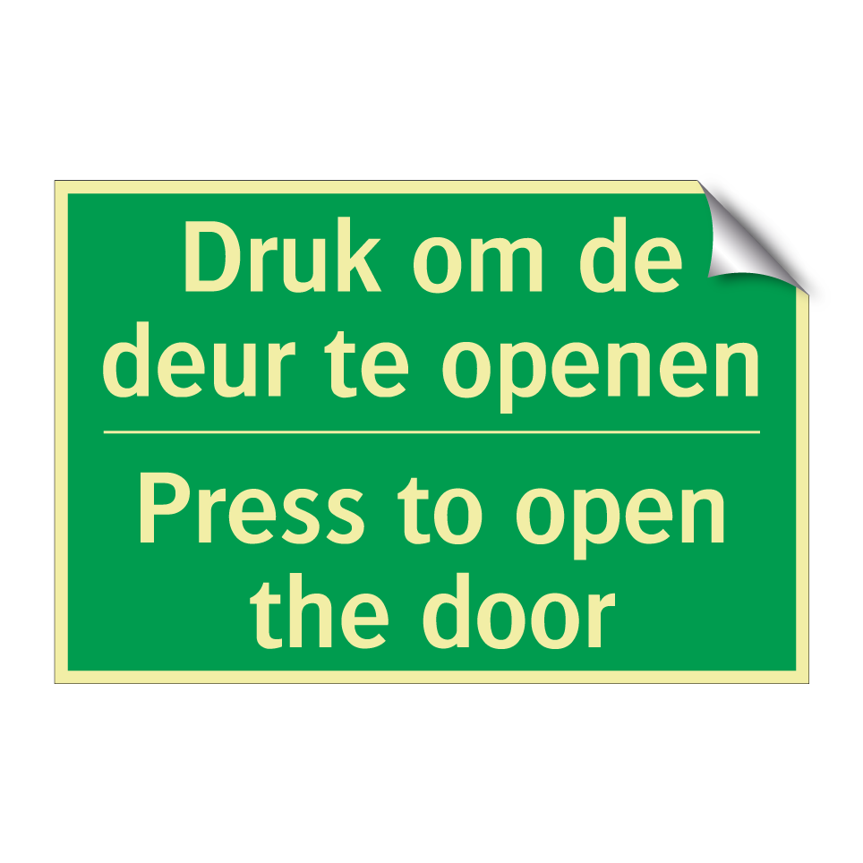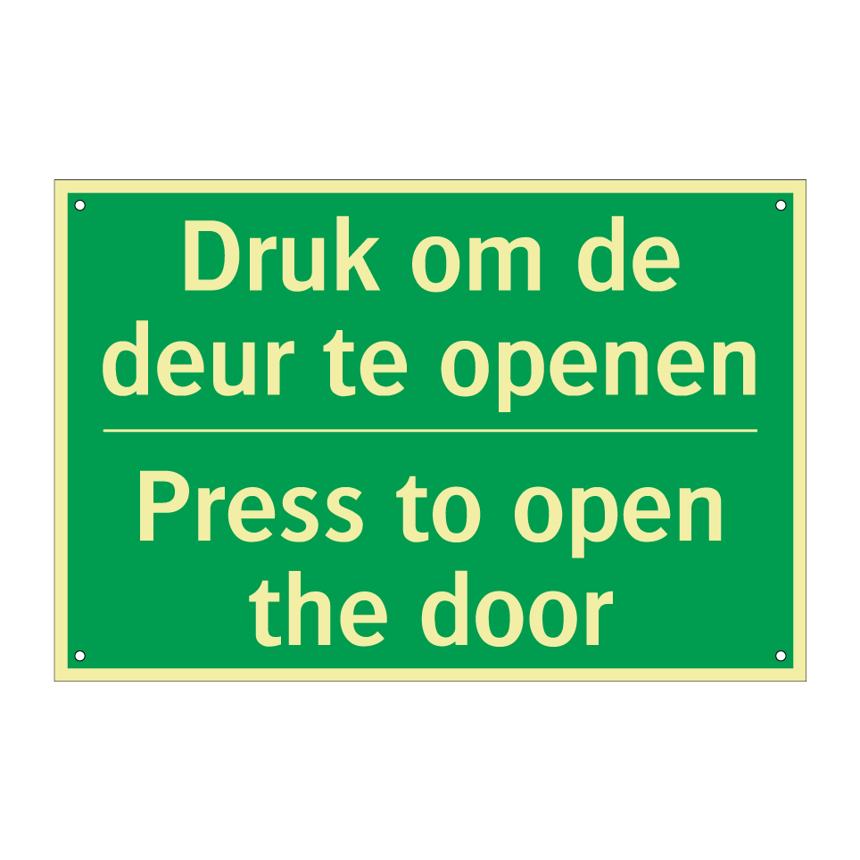 Noodbord met tekst Druk om de deur te openen / Press to open the door
