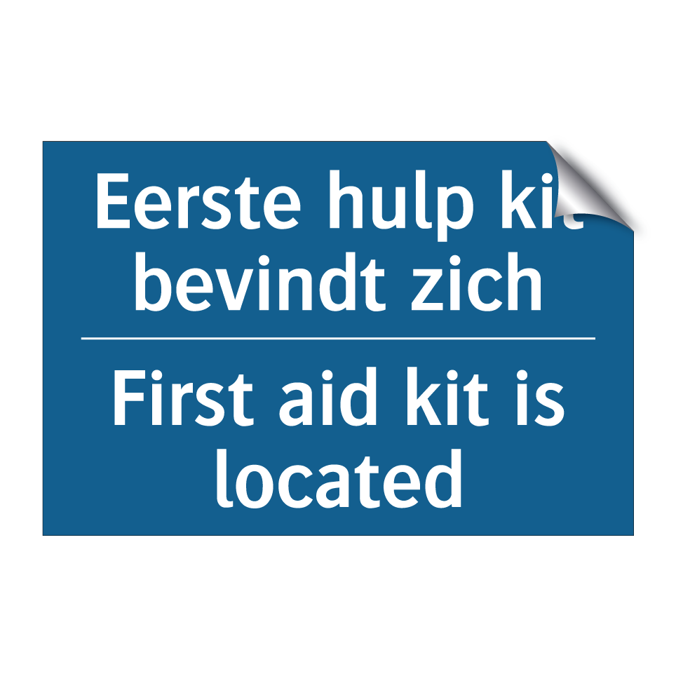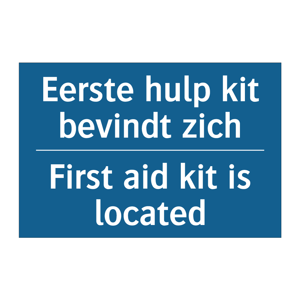 Verplichte bord met de tekst Eerste hulp kit bevindt zich - First aid kit is located: XX