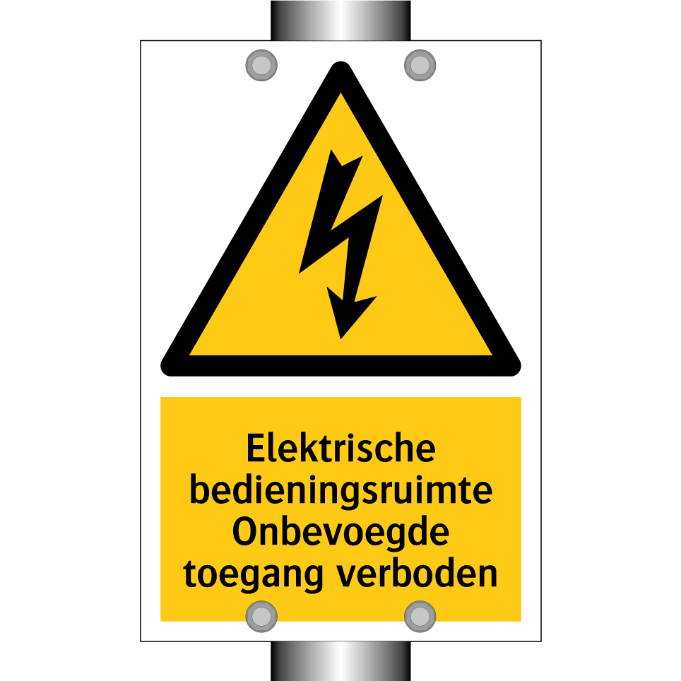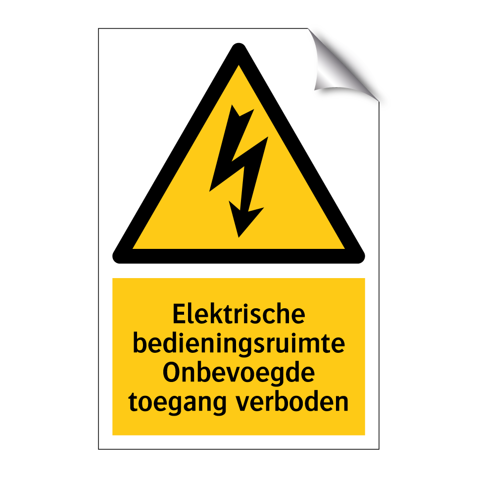 Waarschuwingsbord met de tekst Elektrische bedieningsruimte Onbevoegde toegang verboden