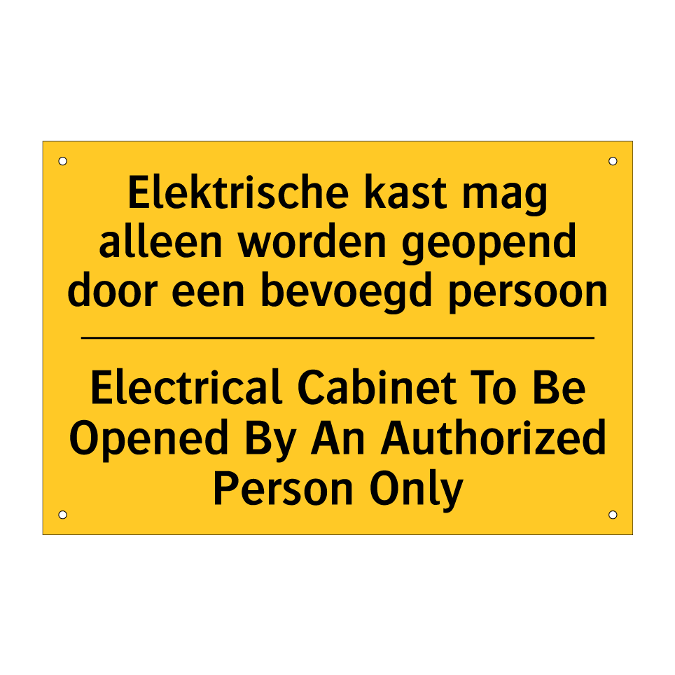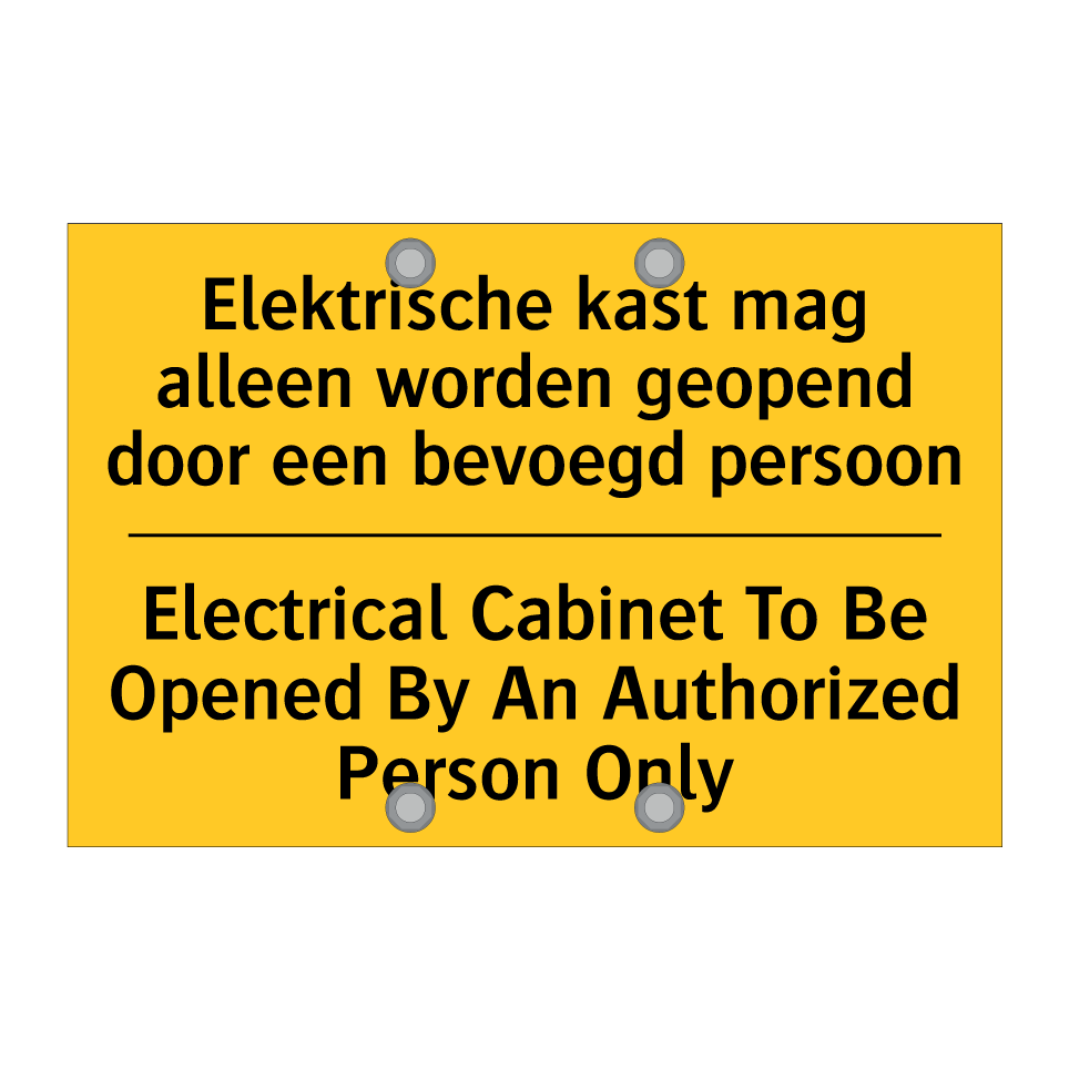 Waarschuwingsbord met de tekst Elektrische kast mag alleen worden geopend door een bevoegd persoon / Electrical Cabinet To Be Opened By An Authorized Person Only