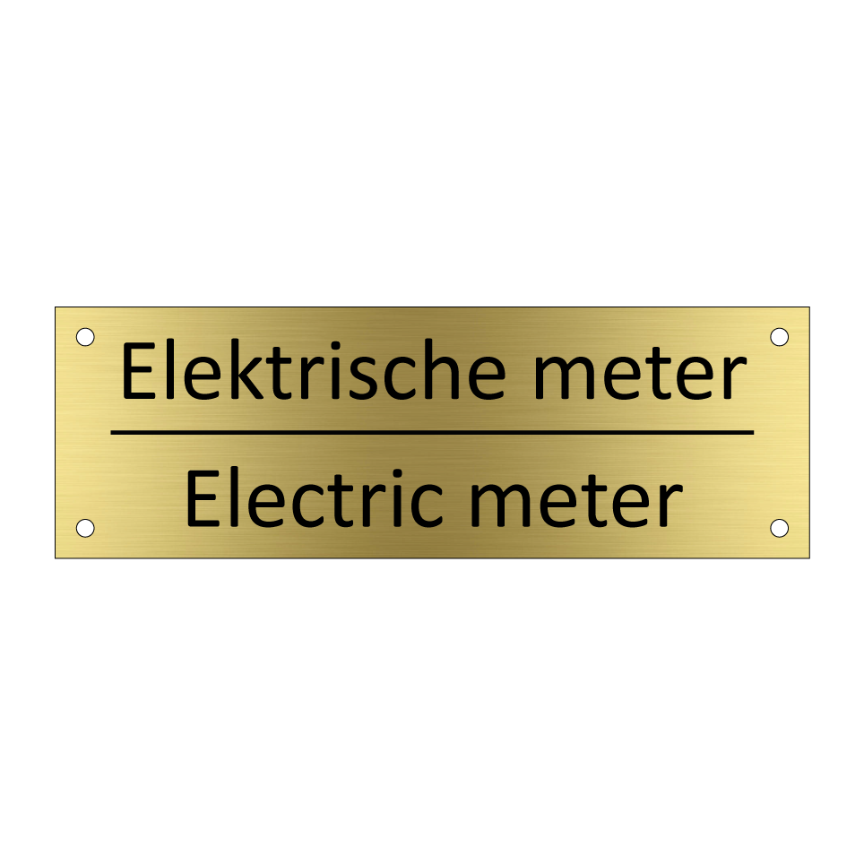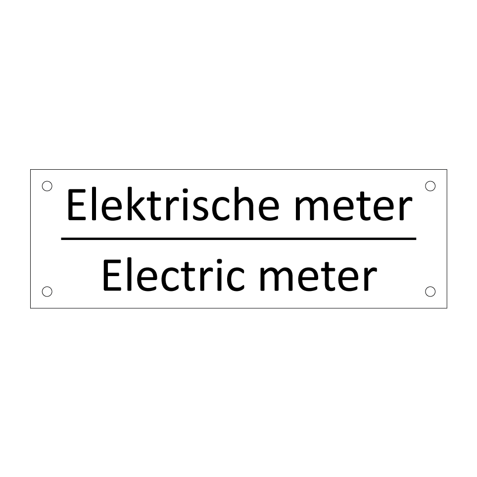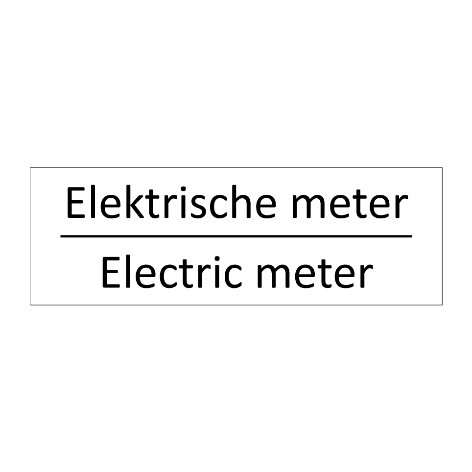Informatiebord met tekst in het nederlands en engels. Dit bord luidt: Elektrische meter evenals met de engelse vertaling Electric meter.