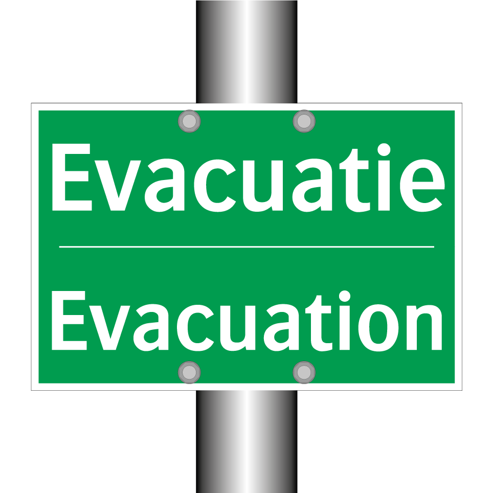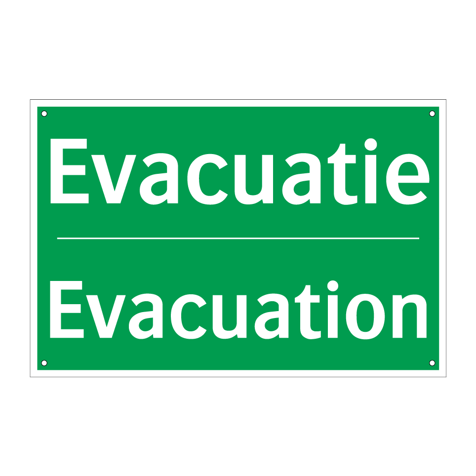 Dit noodbord is essentieel voor een veilige evacuatie in noodsituaties. De groene achtergrond met witte tekst zorgt voor een duidelijke zichtbaarheid, zelfs van een afstand. De tweetalige tekst, in zowel Nederlands als Engels, maakt het bord geschikt voor internationale omgevingen zoals luchthavens, hotels, en kantoren met een divers personeelsbestand. Plaats dit noodbord op strategische locaties zoals gangen, trappenhuizen, en nooduitgangen om de evacuatieprocedure te vergemakkelijken. Door de duidelijke instructies in twee talen, helpt Dit bordje om verwarring te voorkomen en de veiligheid van alle aanwezigen te waarborgen.
